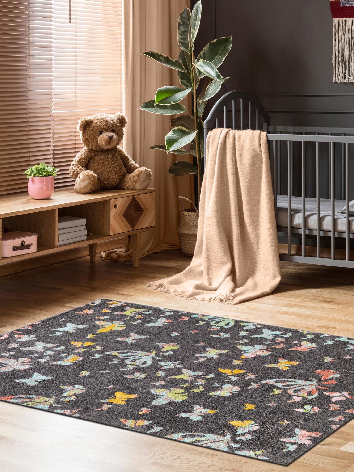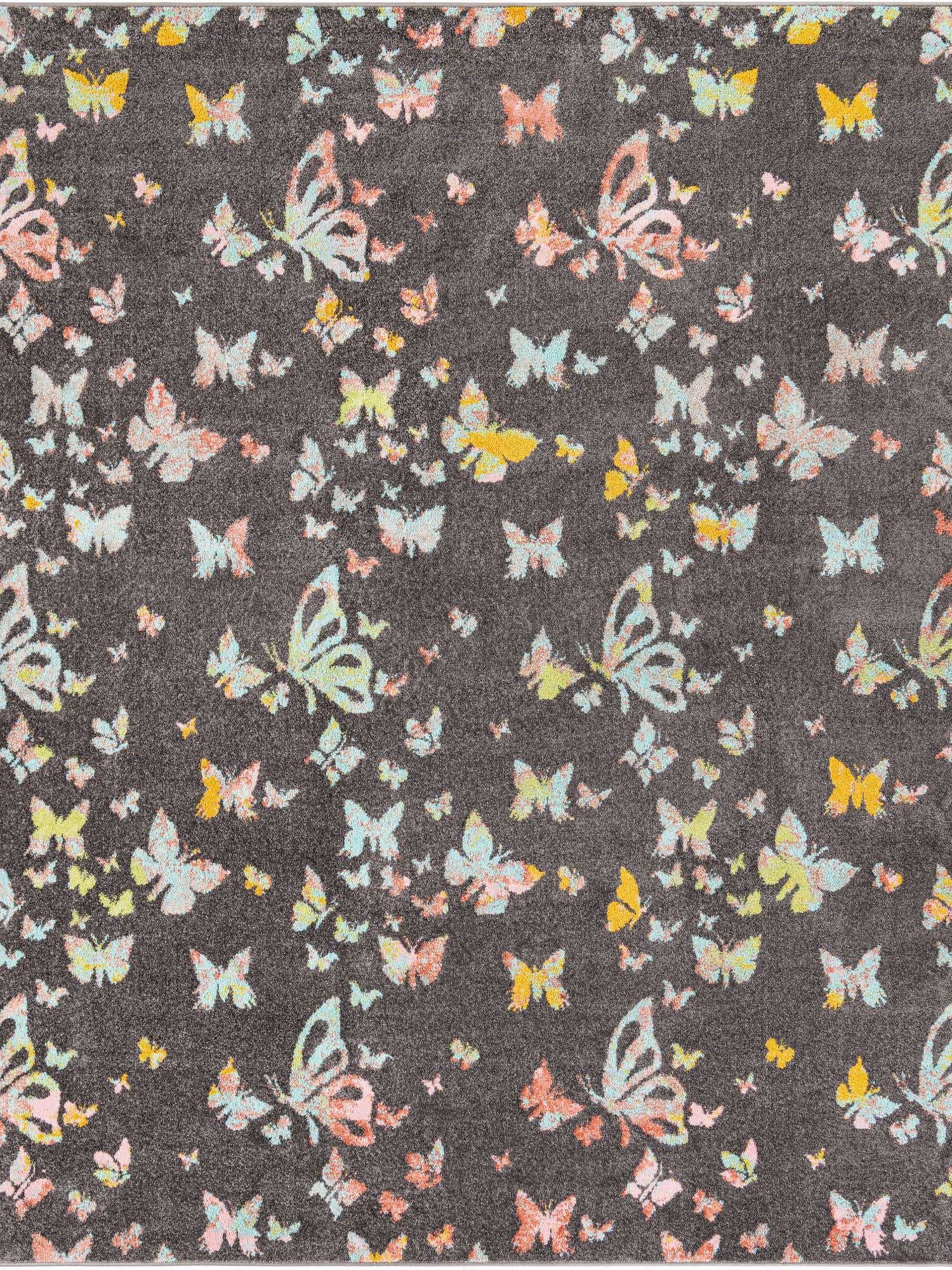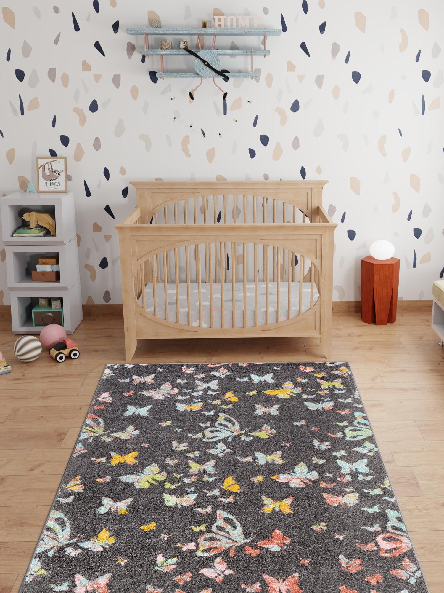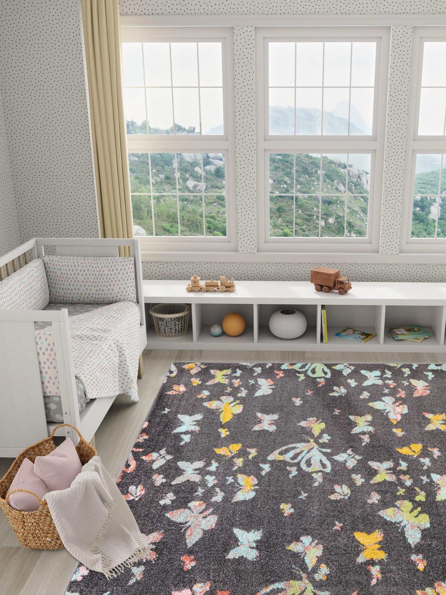 Charcoal Gray 7' 10 x 10' Whimsy Kids Rectangle Area Rug for Baby Nursery, Toddler Playroom, Bedrooms