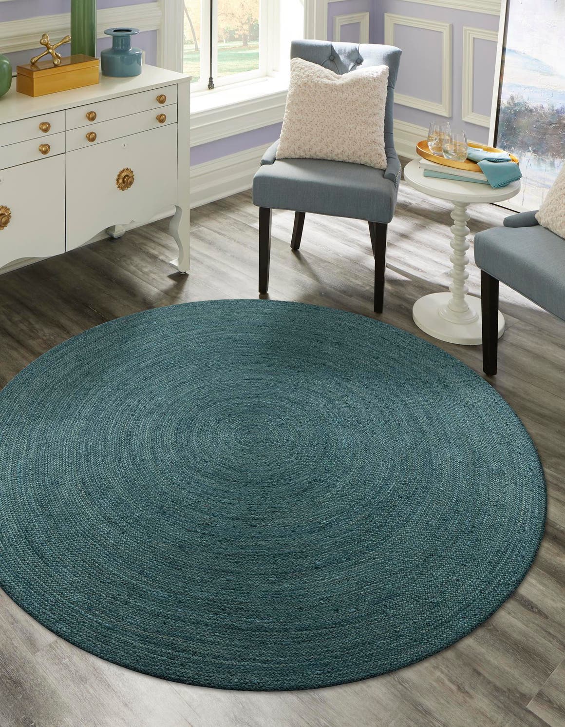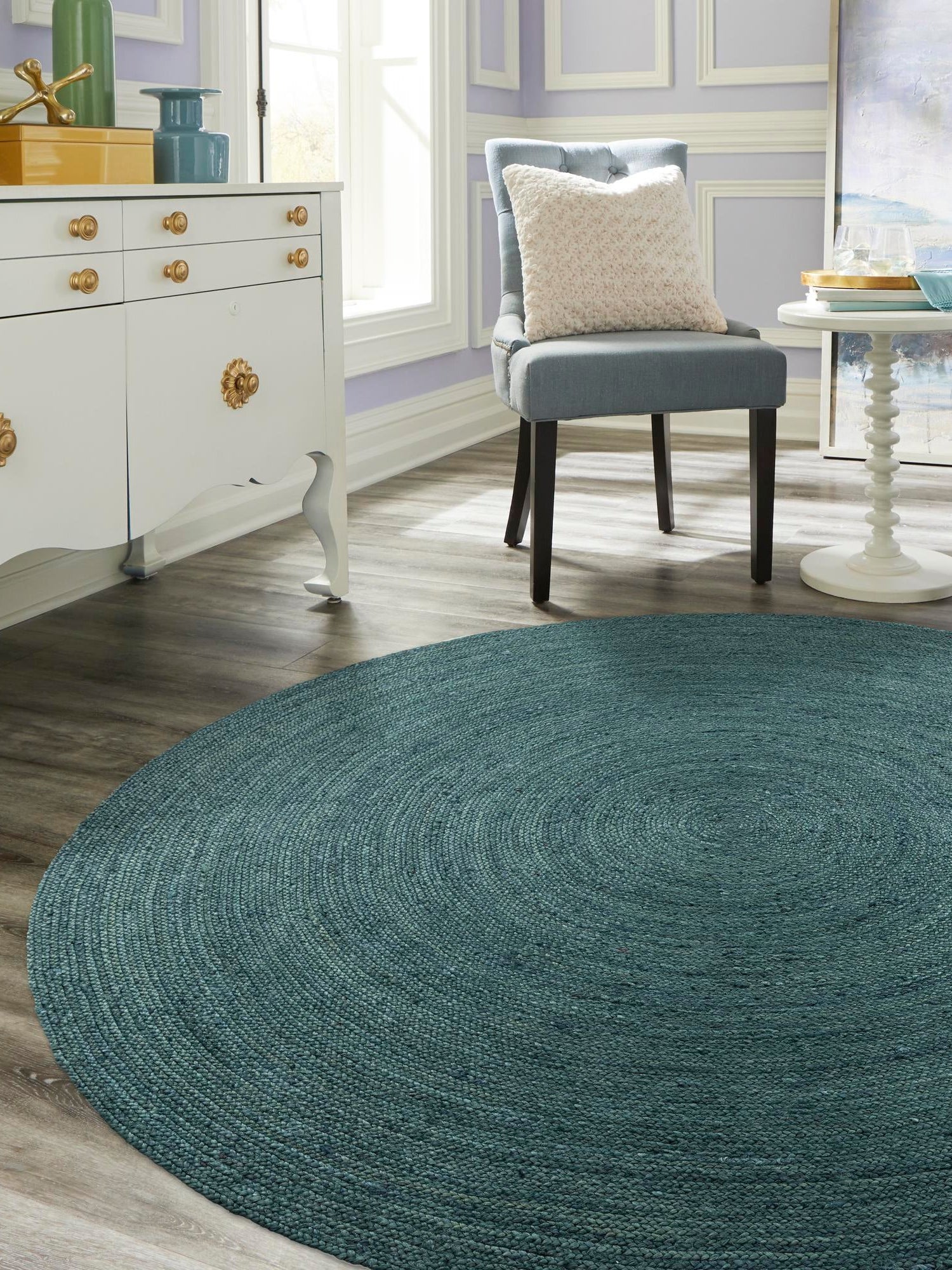 Green 10' x 10' Braided Jute Round Area Rug 100% Jute Hand ...