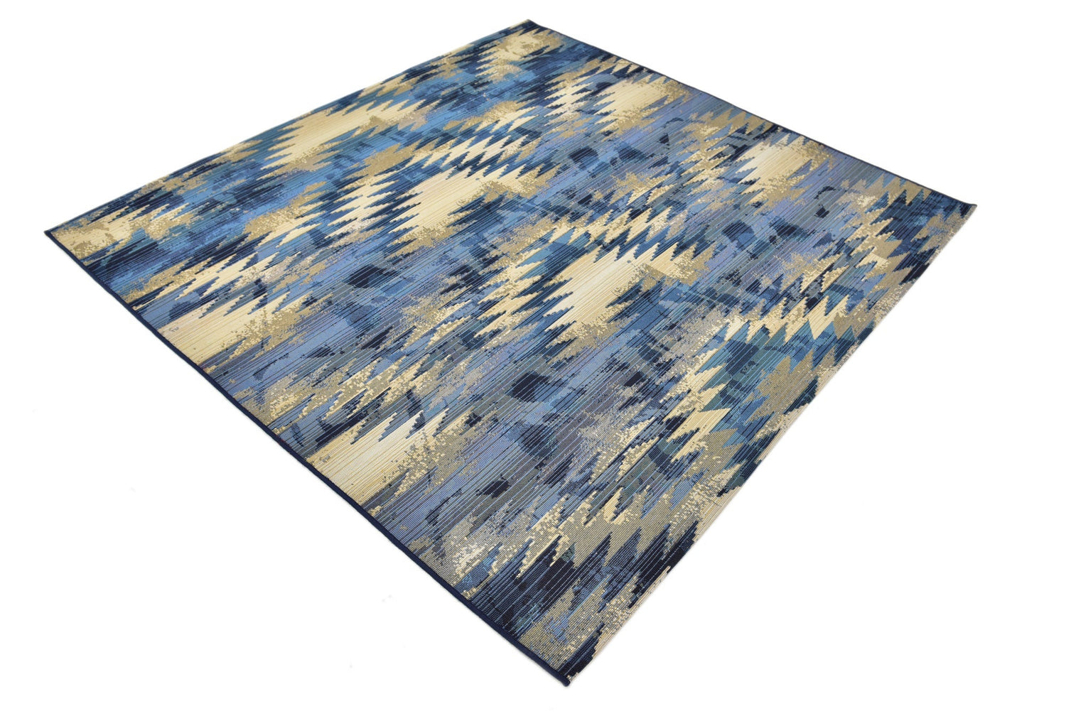 Blue 6' 1 x 6' 1 Outdoor Modern Square Area Rug Weather Res...