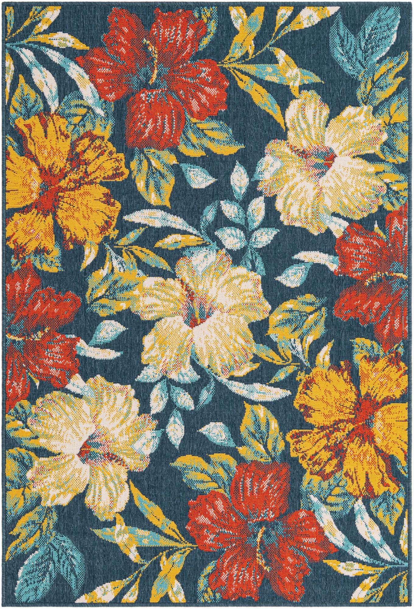 Multicolor 4' 1 x 6' 1 Outdoor Coastal Rectangle Area Rug Weather Resistant for Patio, Deck, Terrace, Balcony, Porch