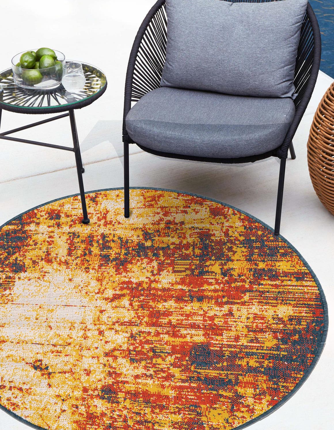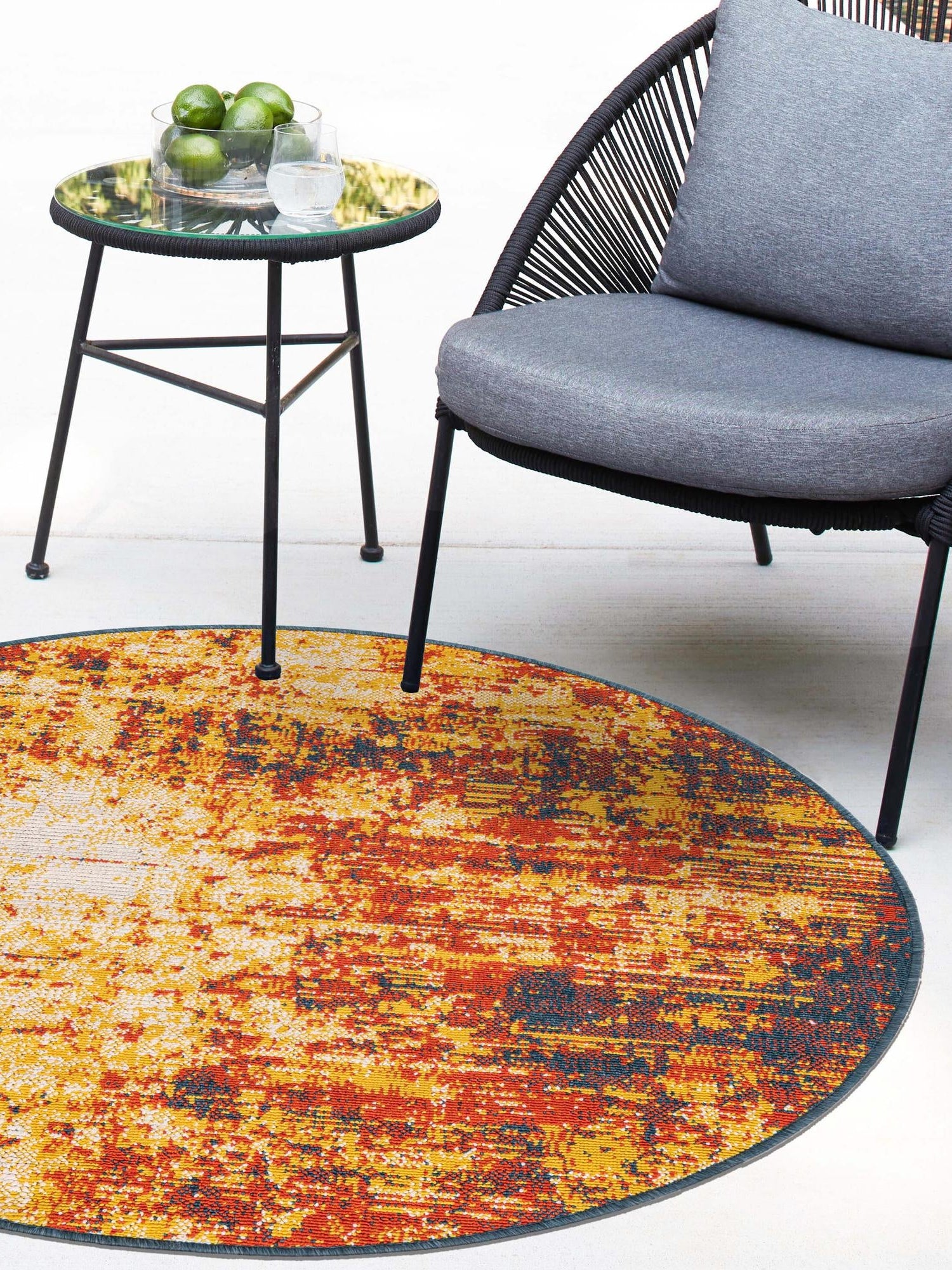 - Generous Size and Shape: Measuring 7' 1" in diameter, this round rug is perfect for enhancing your outdoor spaces. Its spacious design allows for ample seating and movement, making it ideal for gatherings or relaxation. Whether placed on a patio, deck, or in a garden, its size ensures it stands out while complementing your decor.
