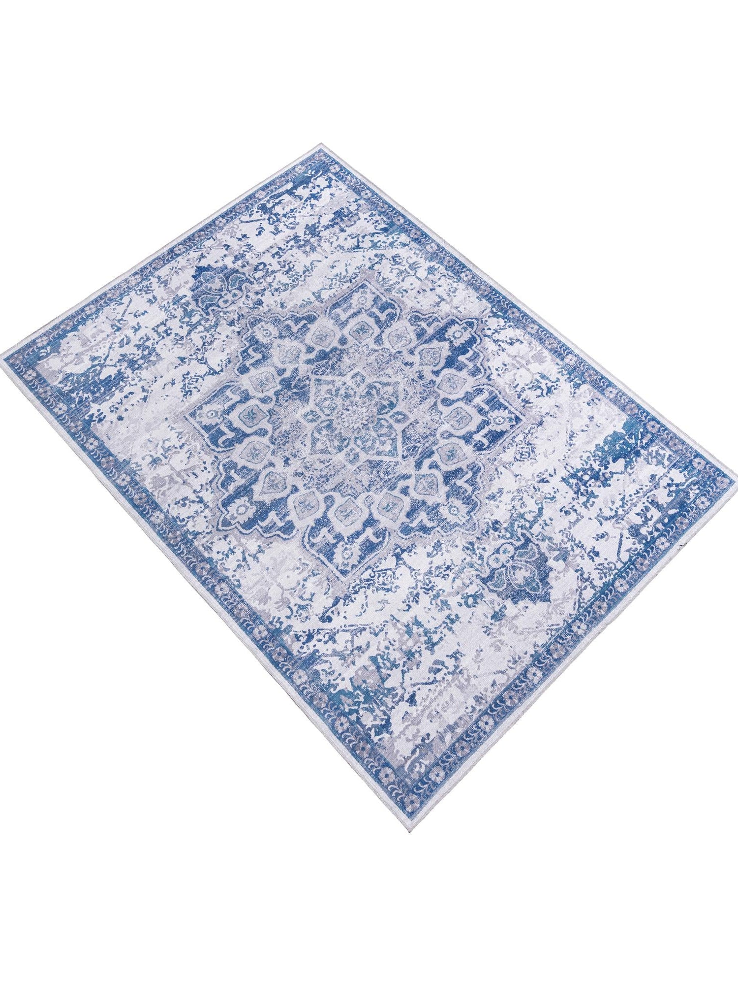 Washable Gray Blue 7' 10 x 10' Renaissance Rectangle Area Rug Easy to Clean Stain Resistant & Durable