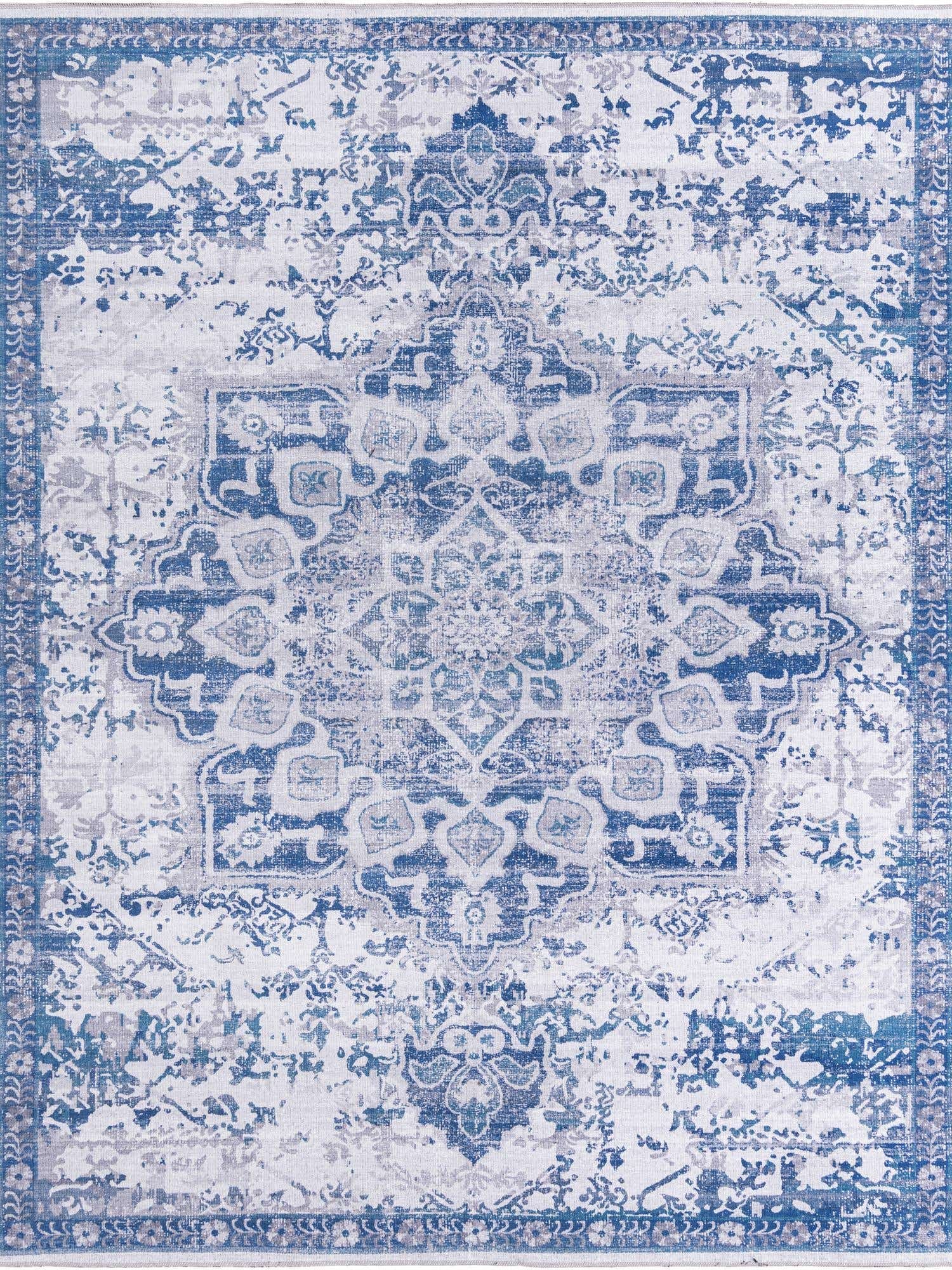 Washable Gray Blue 2' x 3' 1 Renaissance Rectangle Area Rug Easy to Clean Stain Resistant & Durable
