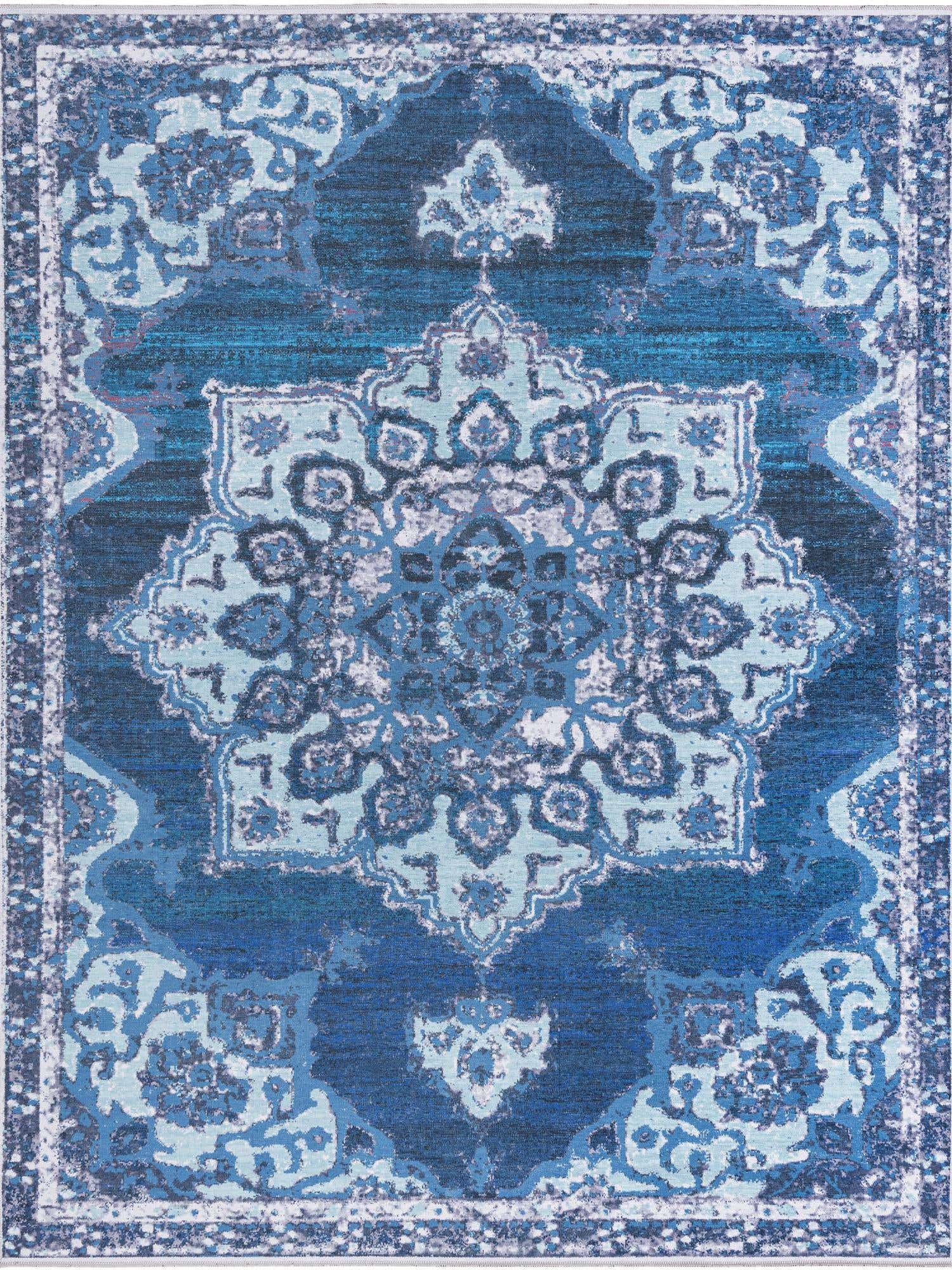 Washable Royal Blue 2' x 5' Yara Runner Area Rug Easy to Clean Stain Resistant & Durable
