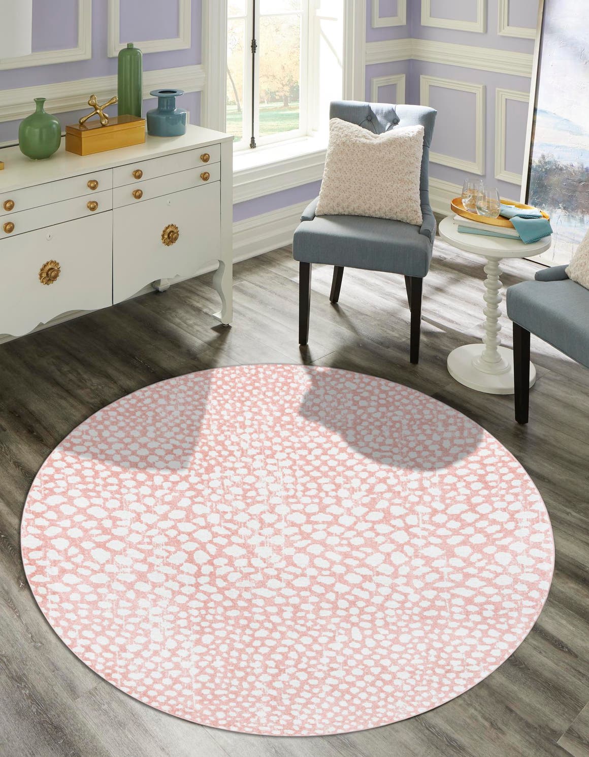Washable Rose Pink 3' 3 x 3' 3 Kamala Washable Round Area Rug Easy to Clean Stain Resistant & Durable 100% Polyester Spill-Friendly Carpet