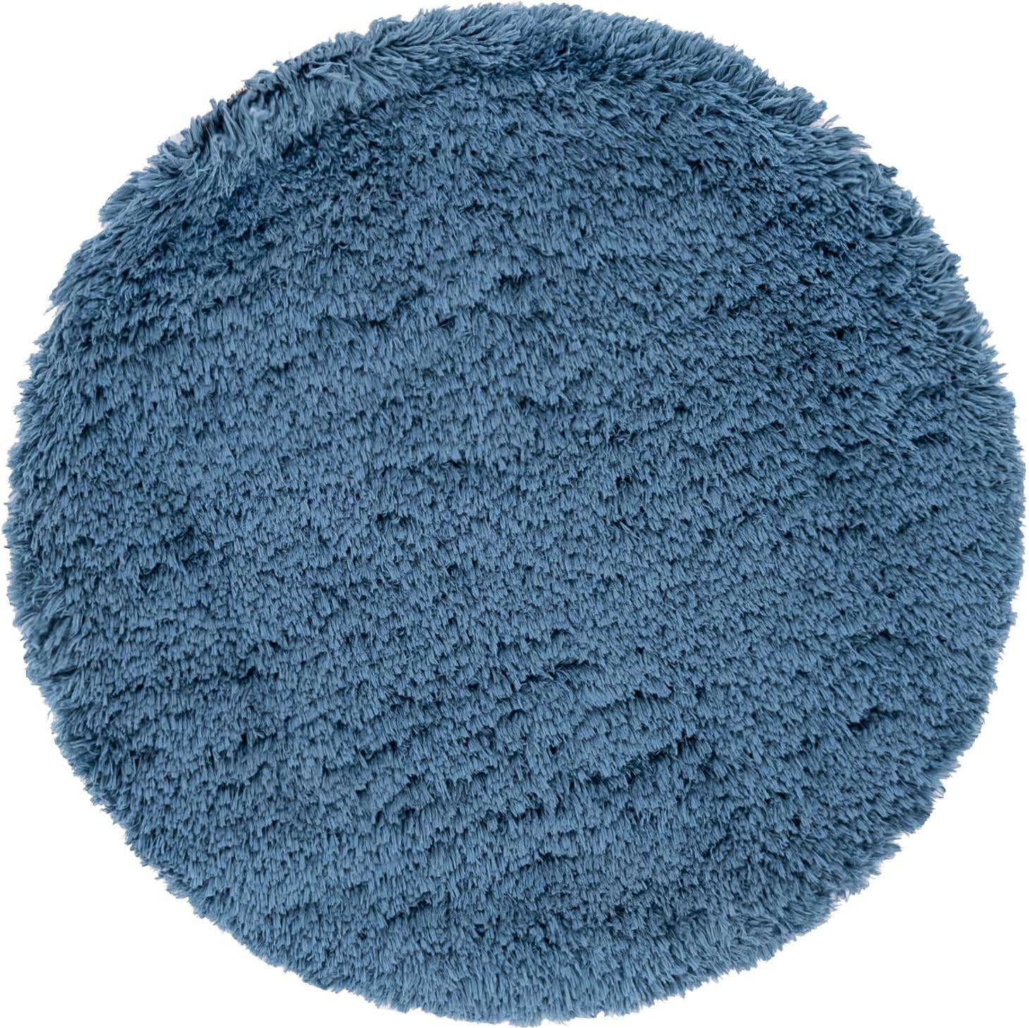 Aegean Blue 3' 3 x 3' 3 Infinity Shag Round Area Rug Thick Soft Touch Fluffy & Plush Shaggy Pile 100% Polypropylene With Jute Backing Solid Color Minimalist Carpet