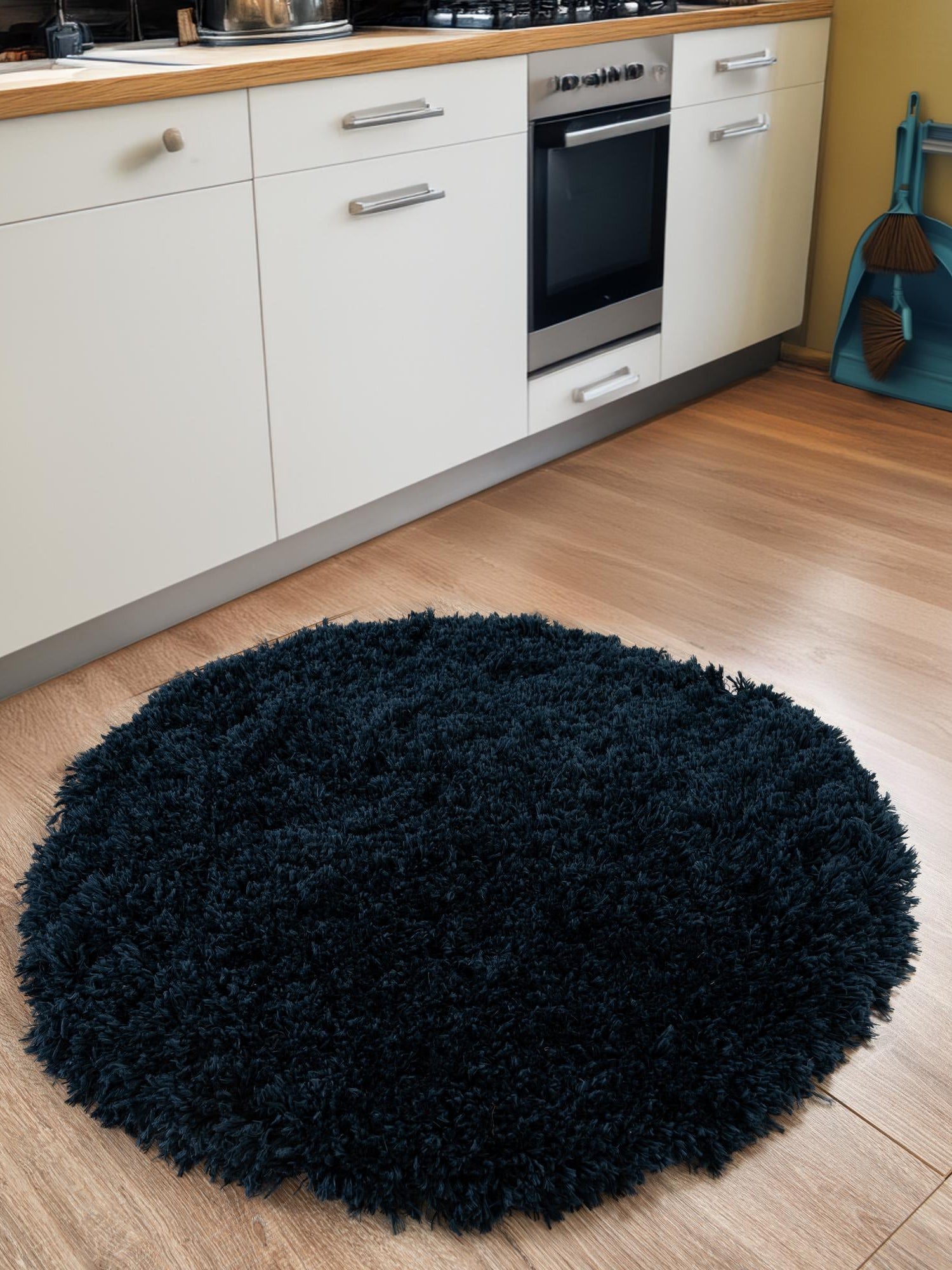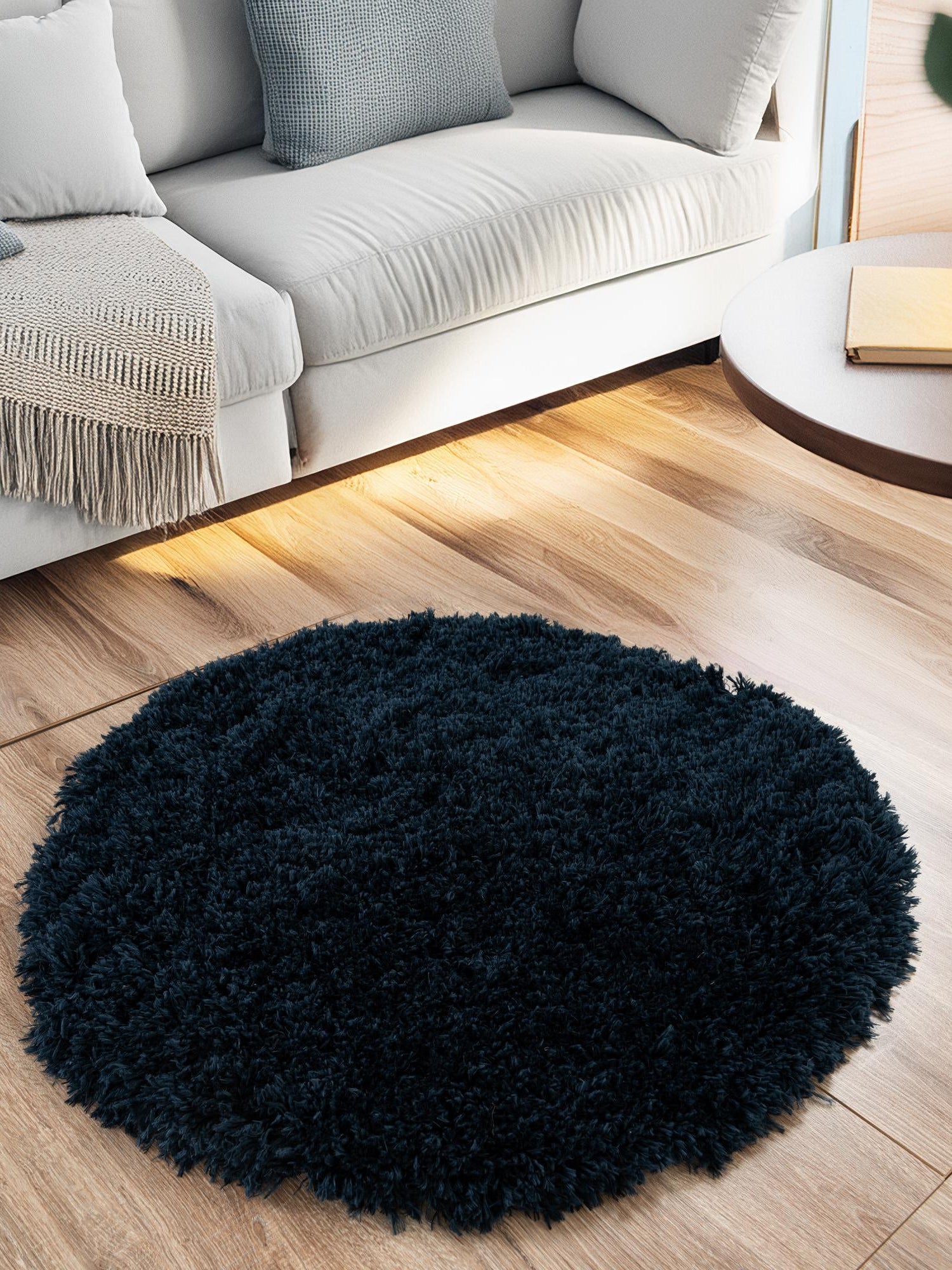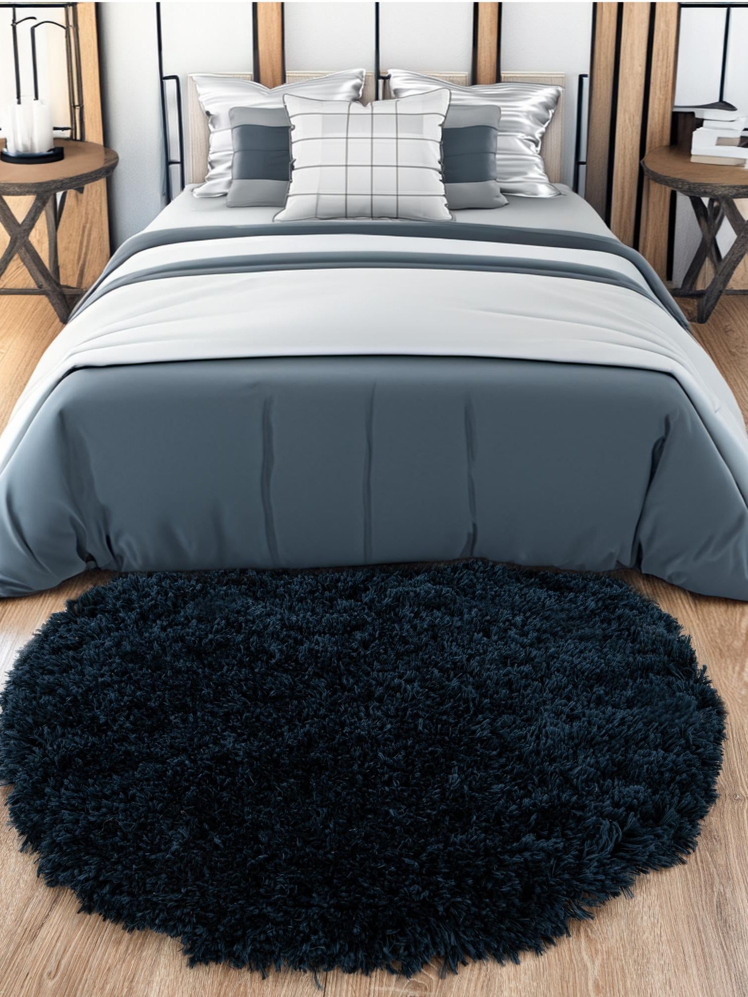 Aegean Blue 3' 3 x 3' 3 Marilyn Monroe Opulence Shag Round Area Rug Thick Soft Touch Fluffy & Plush Shaggy Pile
