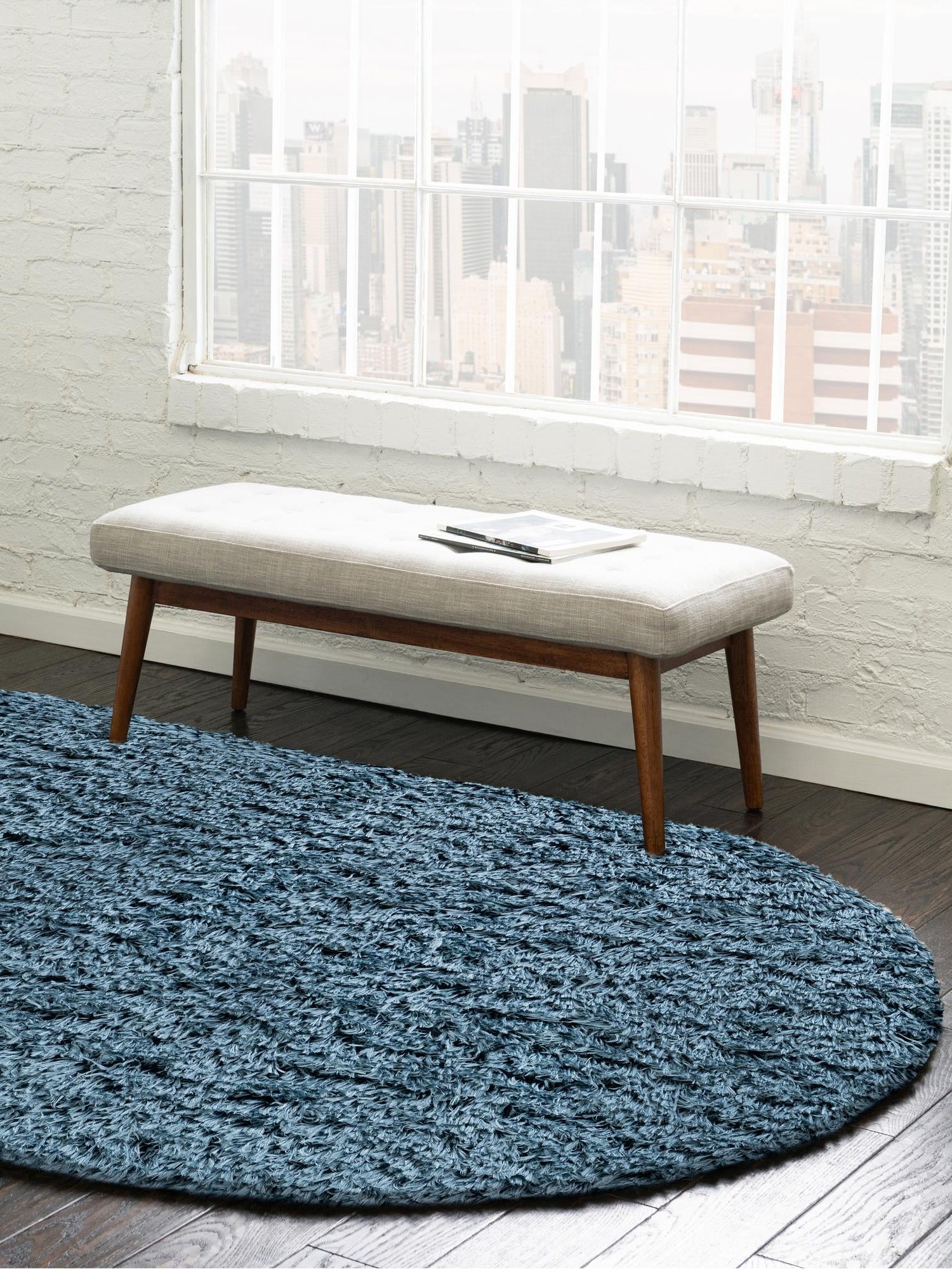 Aegean Blue 4' x 6' Infinity Shag Oval Area Rug Thick Soft Touch Fluffy & Plush Shaggy Pile 100% Polypropylene With Jute Backing Solid Color Minimalist Carpet
