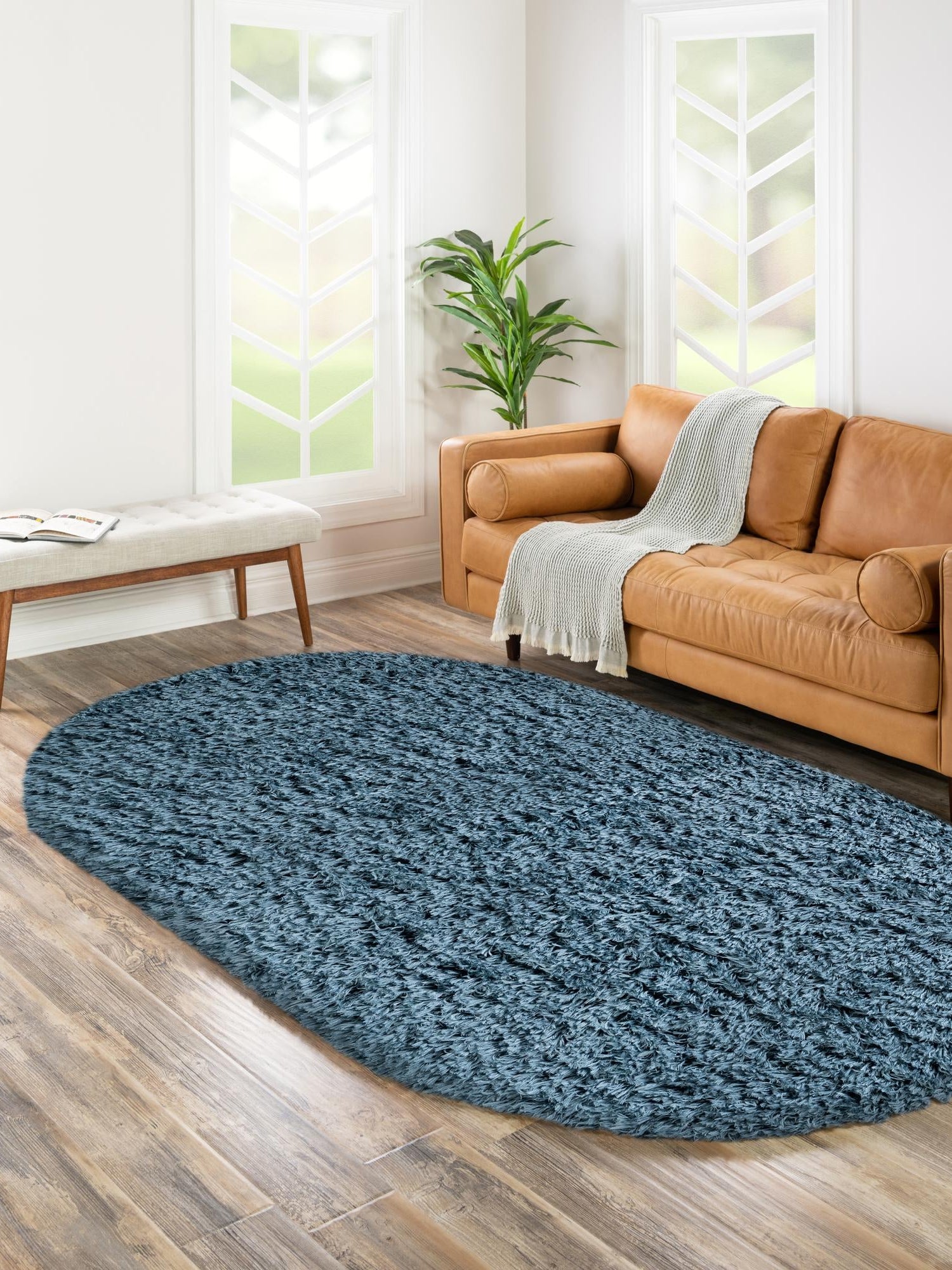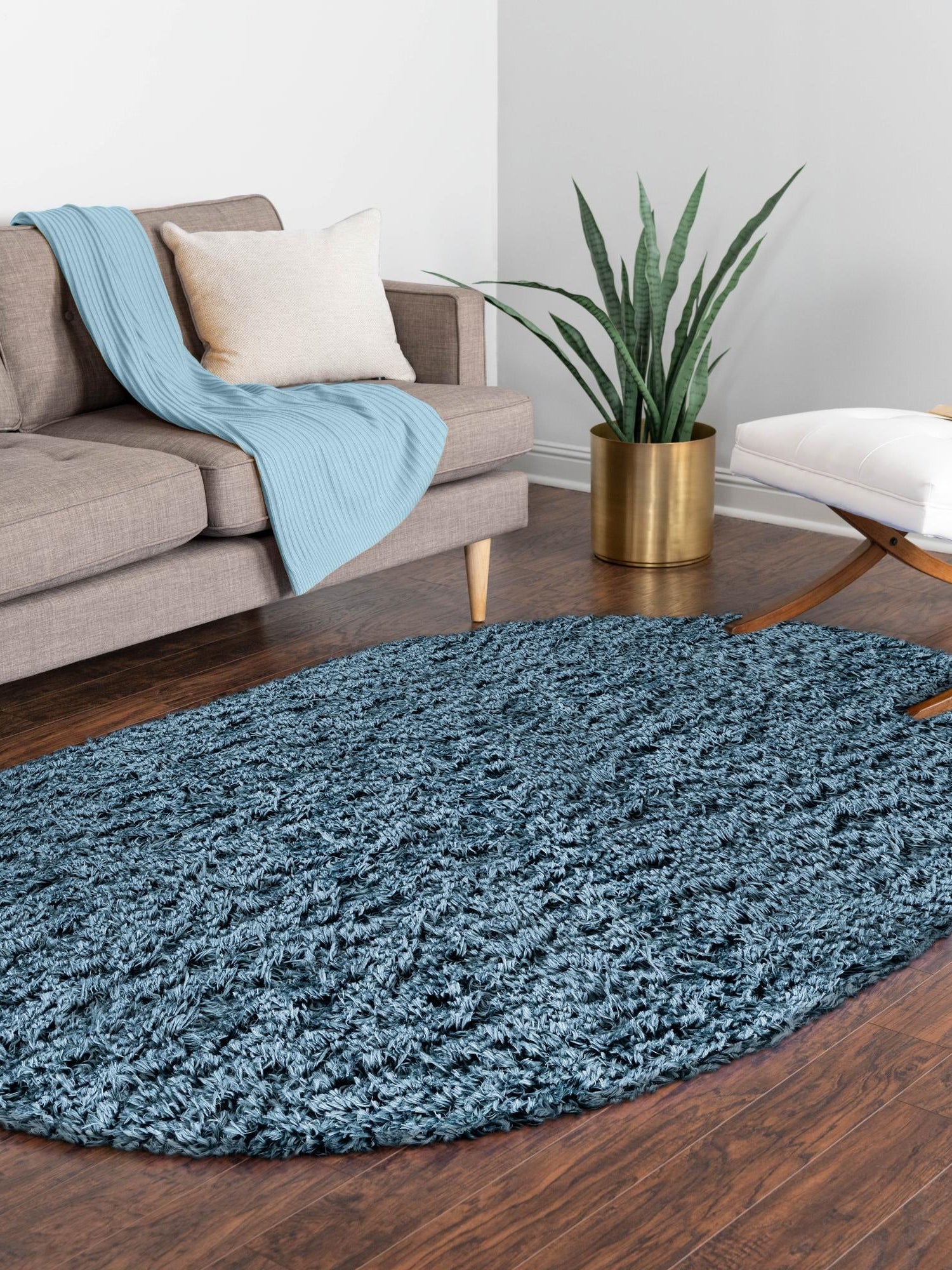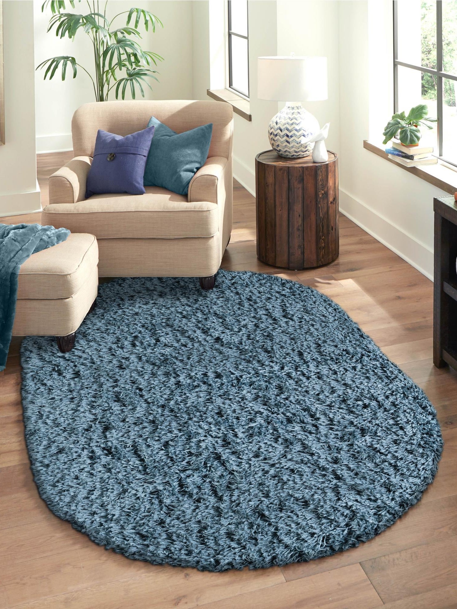 Aegean Blue 4' x 6' Infinity Shag Oval Area Rug Thick Soft ...