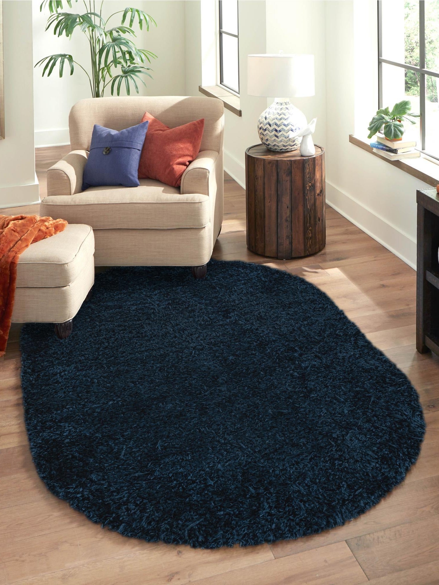 Aegean Blue 5' 3 x 8' Marilyn Monroe Opulence Shag Oval Area Rug Thick Soft Touch Fluffy & Plush Shaggy Pile