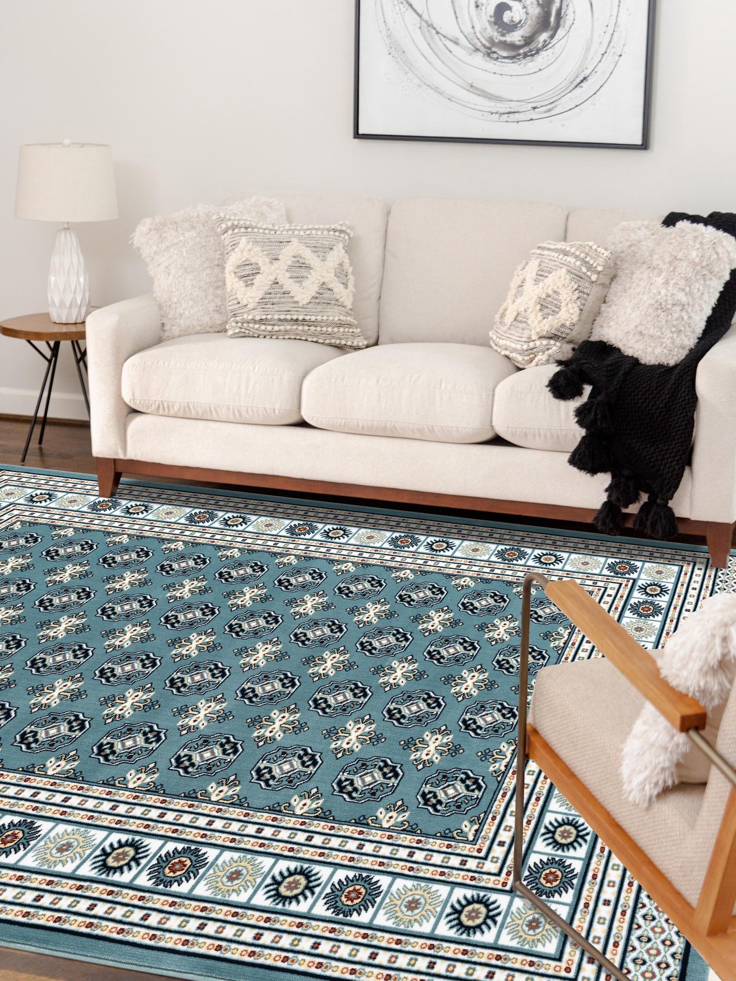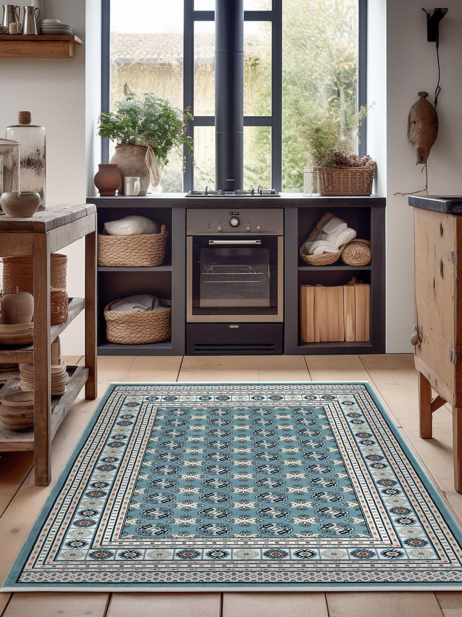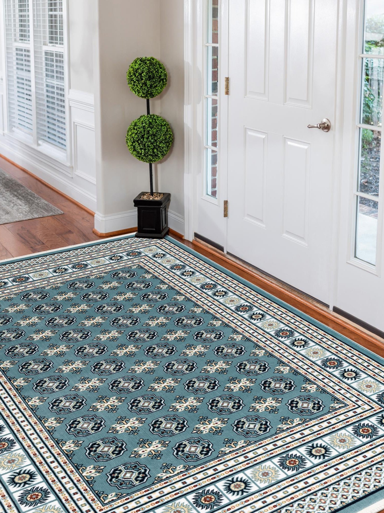 - Elegant Aegean Blue Color: The stunning Aegean Blue hue of this rug is sure to captivate and enhance your decor. This sophisticated color is perfect for creating a serene atmosphere in your home, making it an ideal choice for those who appreciate tranquility. Its versatile tone complements a variety of design styles, from traditional to modern.