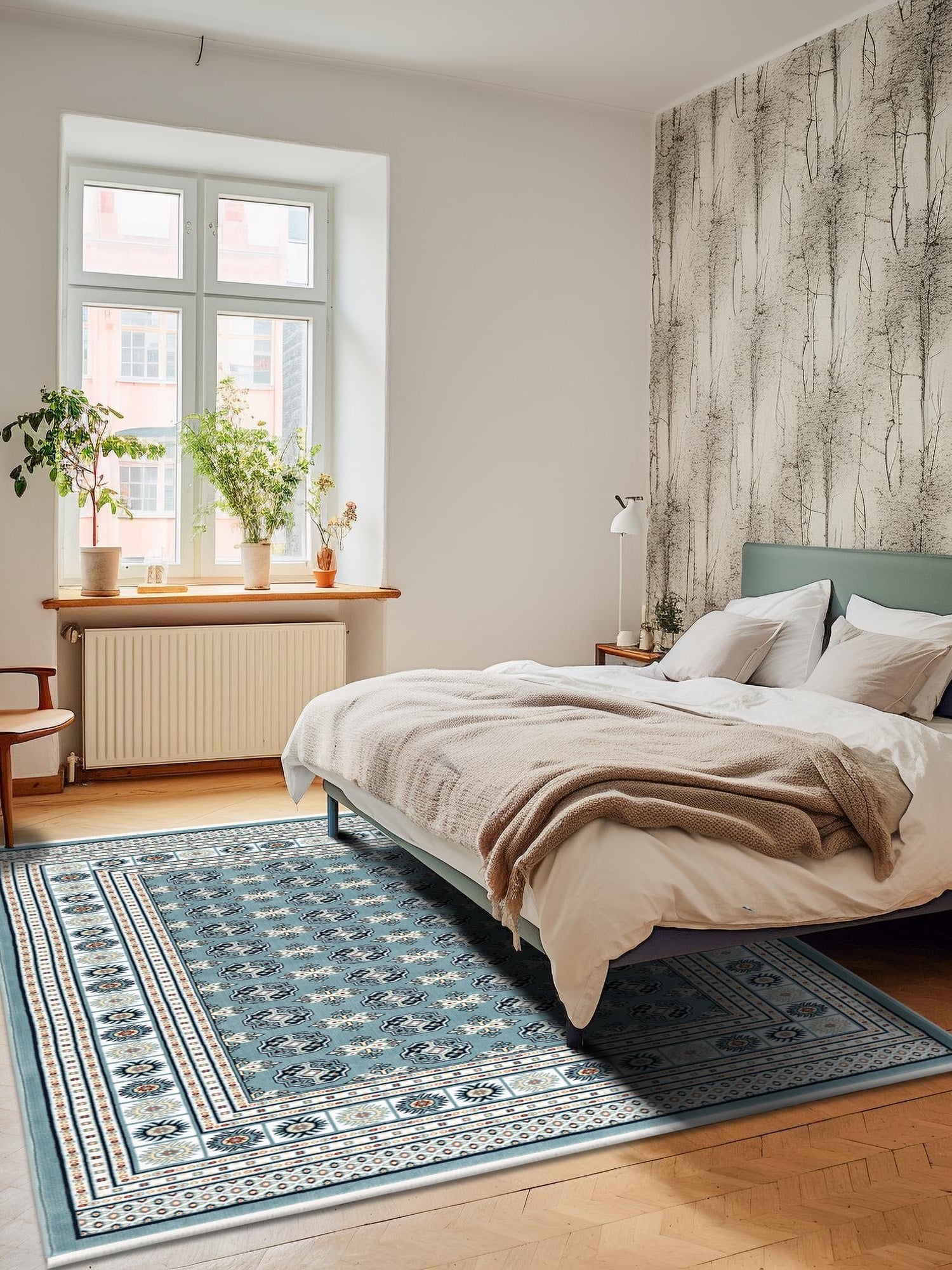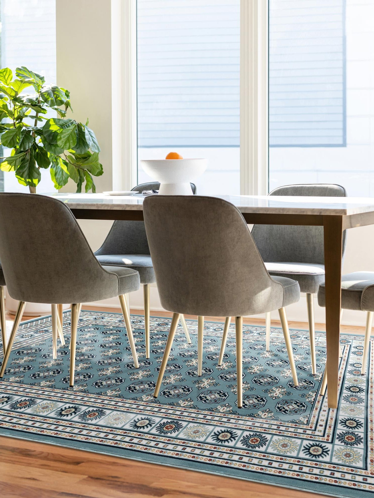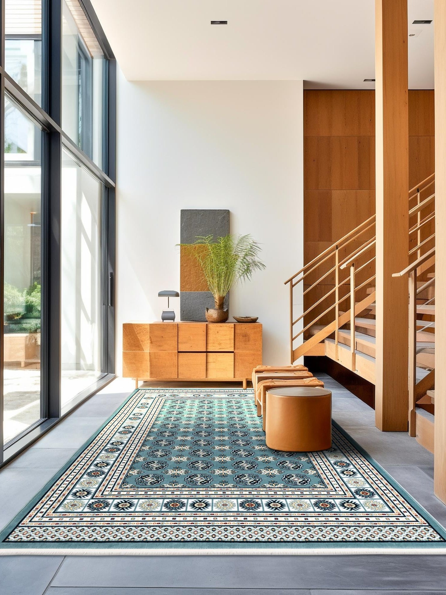 - Elegant Aegean Blue Color: The stunning Aegean Blue hue of this rug is sure to captivate and enhance your decor. This sophisticated color is perfect for creating a serene atmosphere in your home, making it an ideal choice for those who appreciate tranquility. Its versatile tone complements a variety of design styles, from traditional to modern.