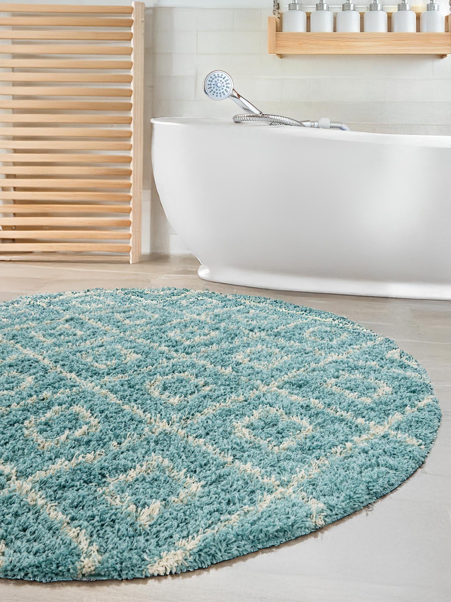Aqua 6' x 6' Trellis Shag Round Area Rug Thick Soft Touch F...