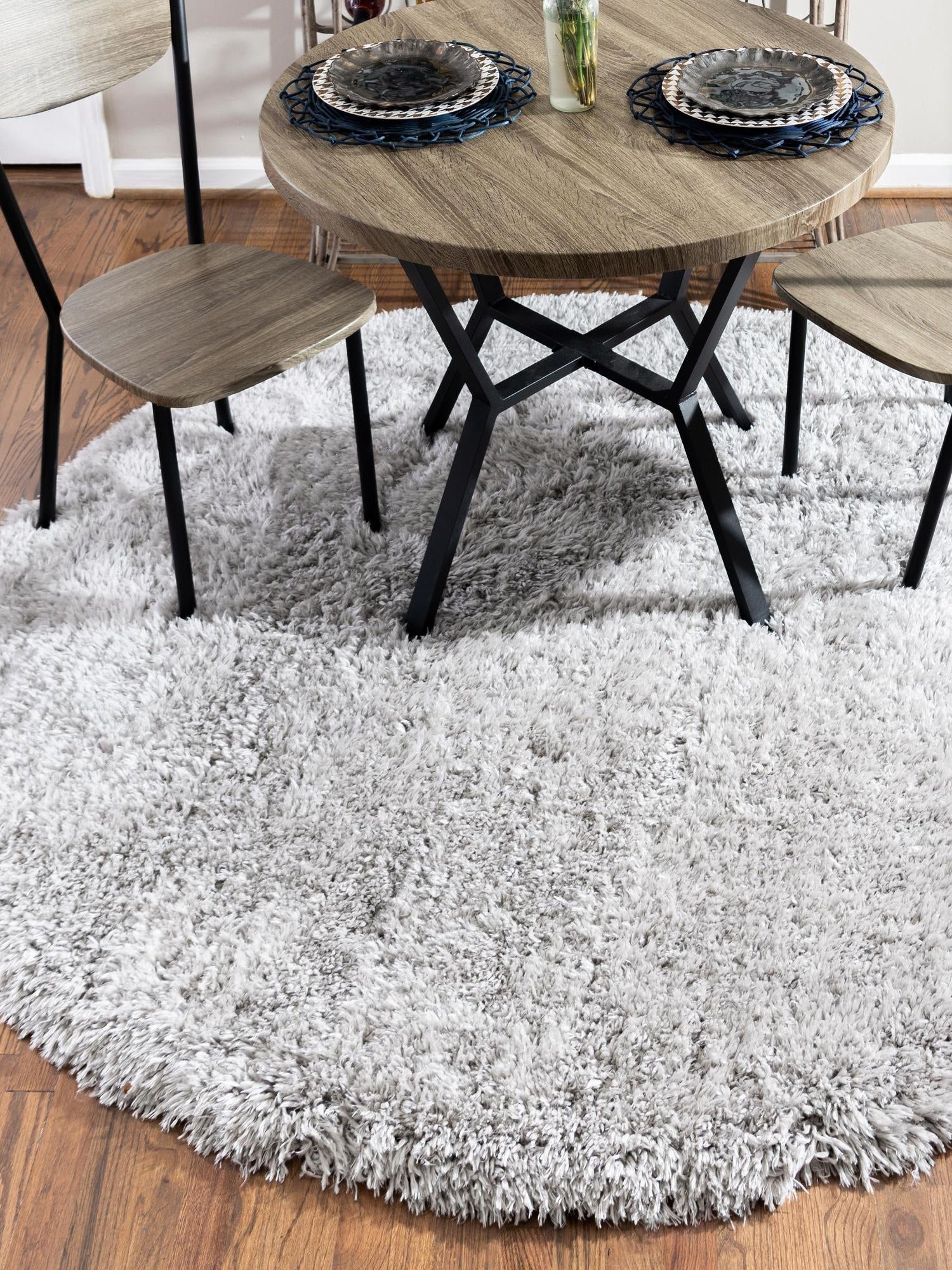 Ash 5' 1 x 5' 1 Infinity Shag Round Area Rug Thick Soft Touch Fluffy & Plush Shaggy Pile 100% Polypropylene With Jute Backing Solid Color Minimalist Carpet