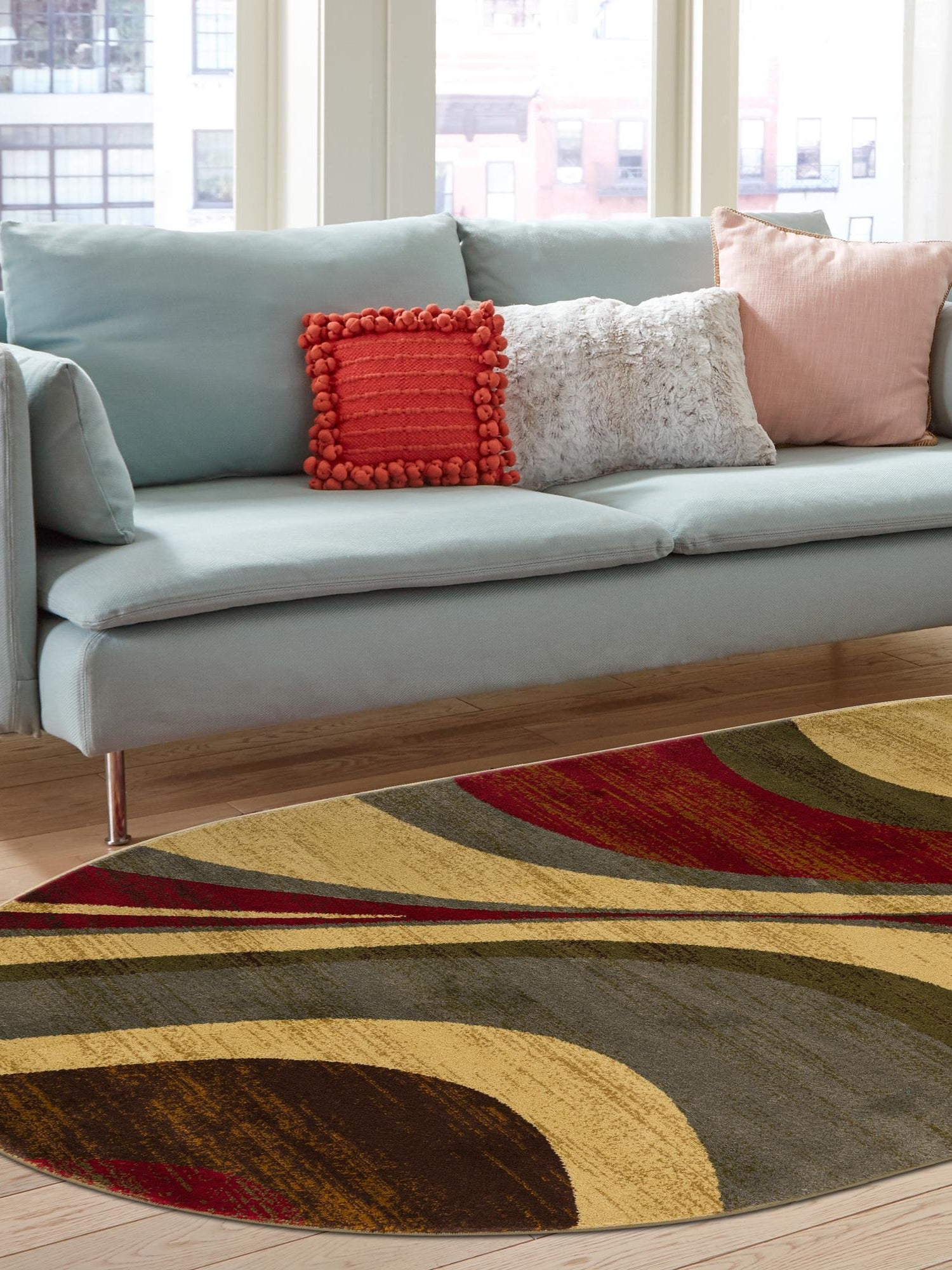 Washable Multicolor 5' x 5' Timeless Round Area Rug Easy to Clean Stain Resistant & Durable