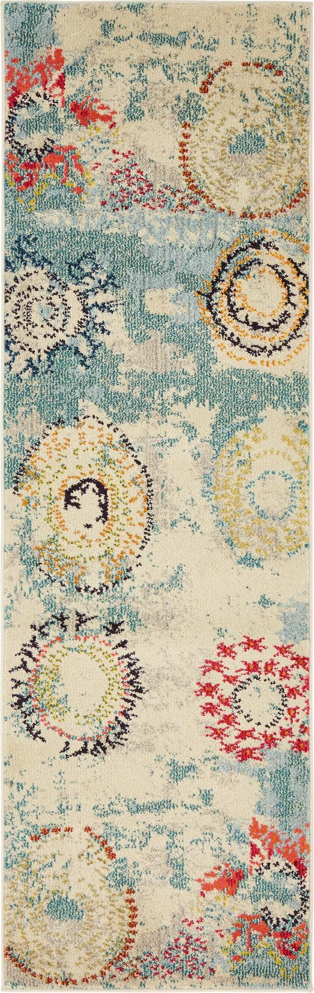 Beige 2' 2 x 6' 9 Estrella Runner Area Rug 100% Polypropylene Non-Shedding Stain Resistant Carpet Colorful Modern Abstract Design Easy Clean for Home Decor
