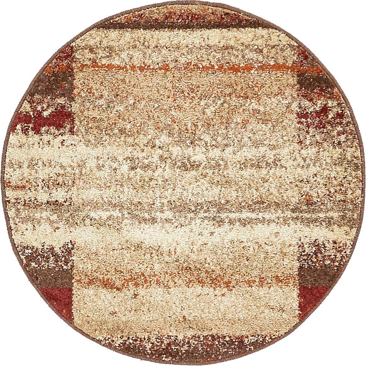 Beige 3' 1 x 3' 1 Autumn Round Area Rug 100% Polypropylene Durable Jute Backing Living Dining Room Bedroom Office Modern Decor Carpet