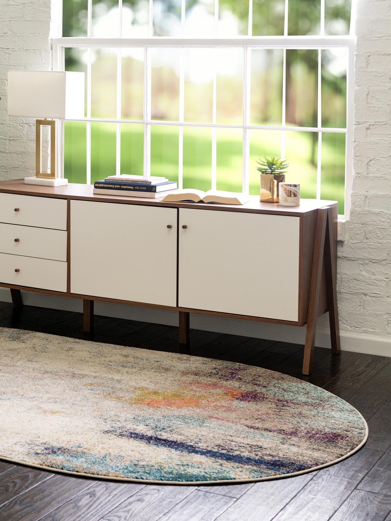 Beige 3' 3 x 5' 3 Chromatic Oval Area Rug 100% Polypropylene With Cotton Backing Abstract Modern Colorful Carpet Mat for Home Decor & Interior Design