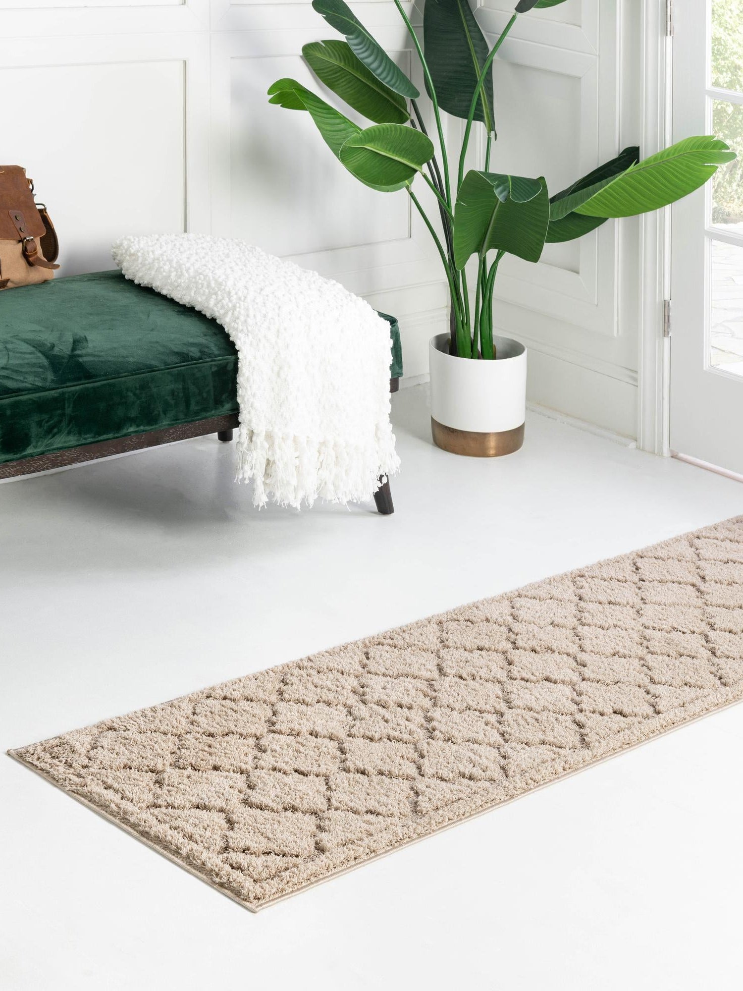 Beige 2' 7 x 10' Trellis Shag Runner Area Rug Thick Soft To...