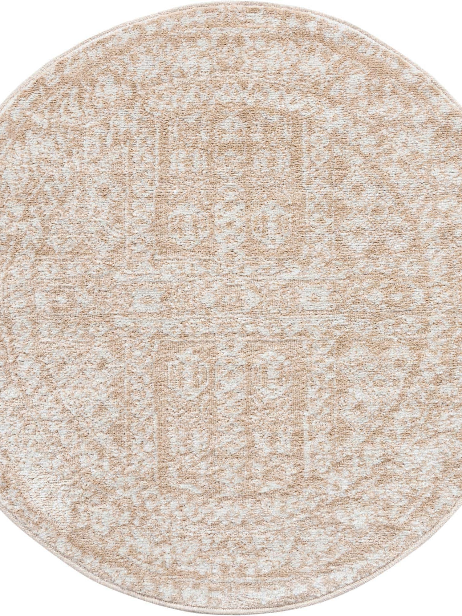 Washable Beige 7' 6 x 7' 6 Timeless Square Area Rug Easy to Clean Stain Resistant & Durable