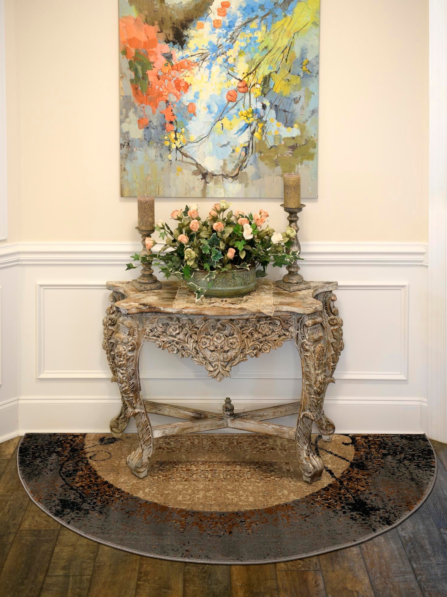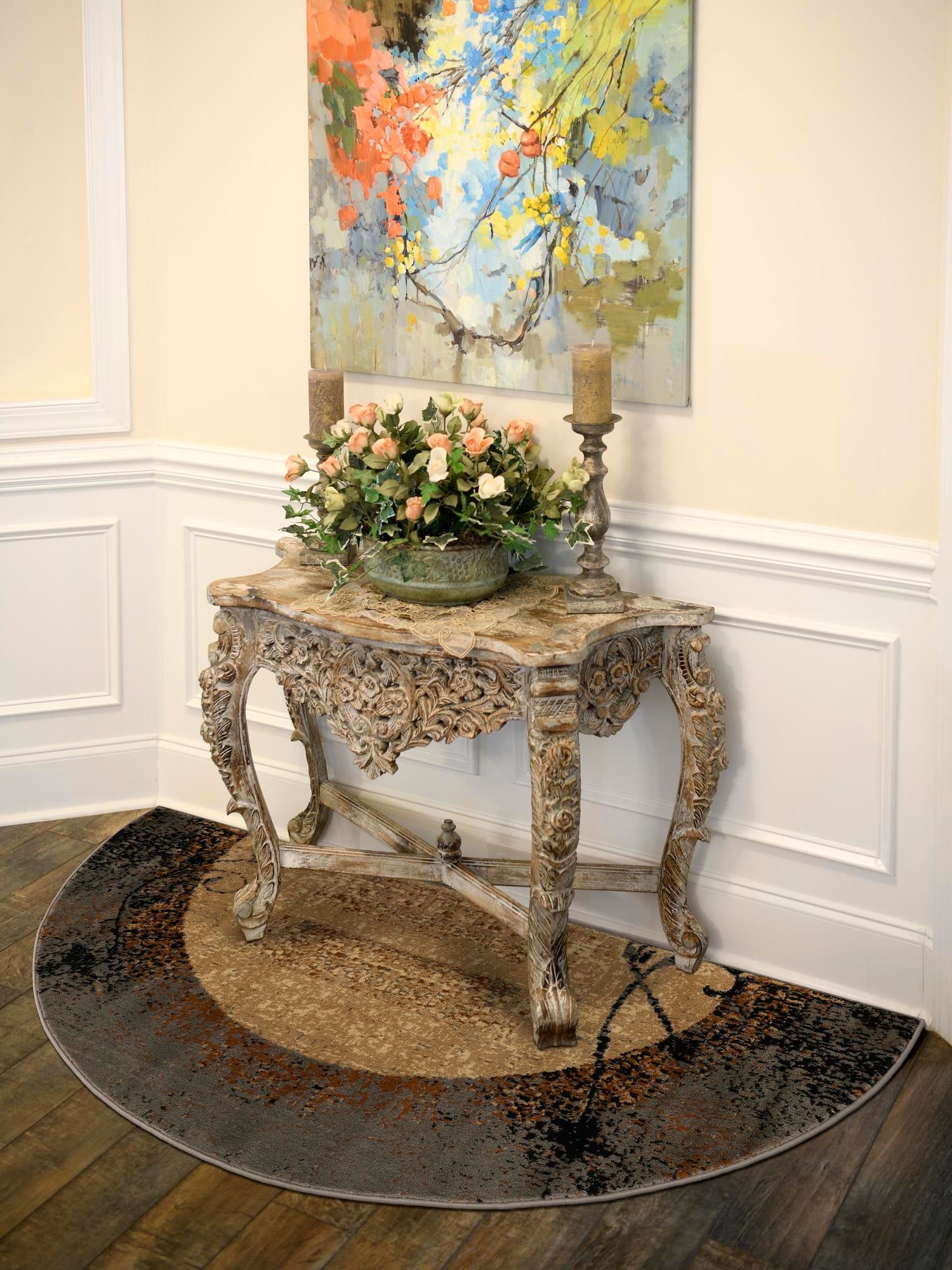 Beige 3' 1 x 6' 1 Barista Hearth Half-Round Semicircle Area Rug 100% Polypropylene Abstract Modern Geometric Carpet for Living Room Dining Office Dorm Room Decor