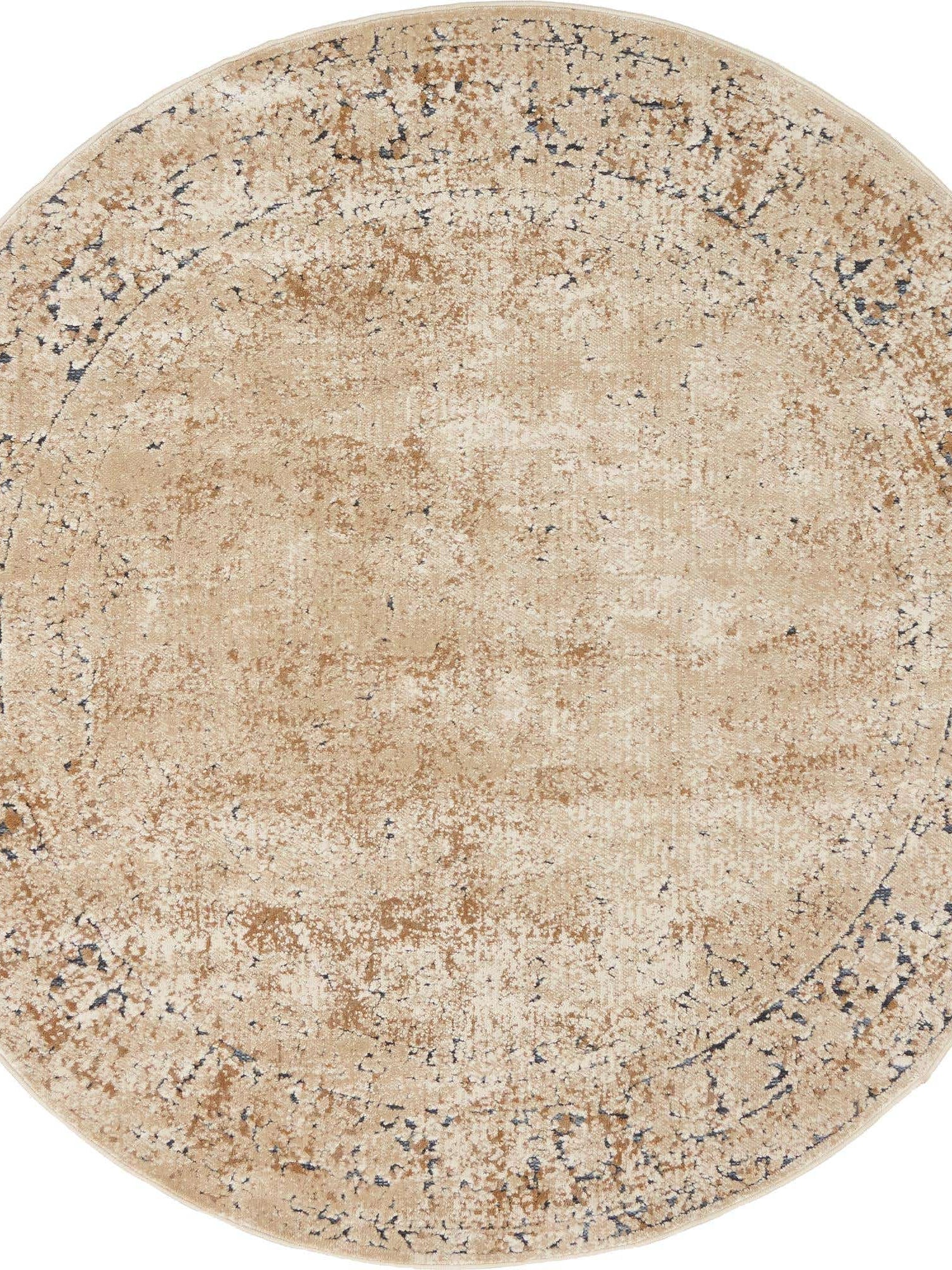Beige 4' 1 x 4' 1 Chateau Round Area Rug 85% Polypropylene & 15% Chenille With Cotton Backing Traditional Vintage Distressed Carpet for Classical Interior Design Decorating