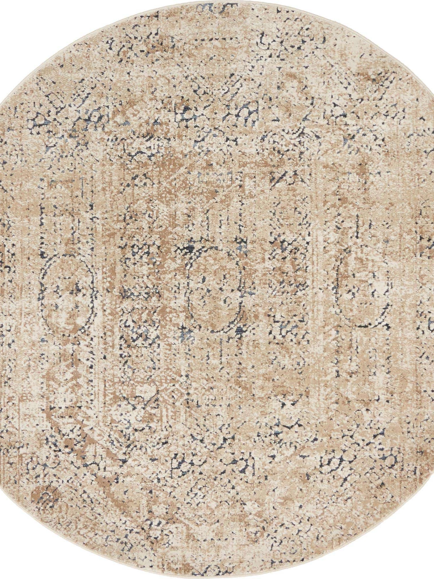 Beige 4' 1 x 4' 1 Chateau Round Area Rug 85% Polypropylene & 15% Chenille With Cotton Backing Traditional Vintage Distressed Carpet for Classical Interior Design Decorating