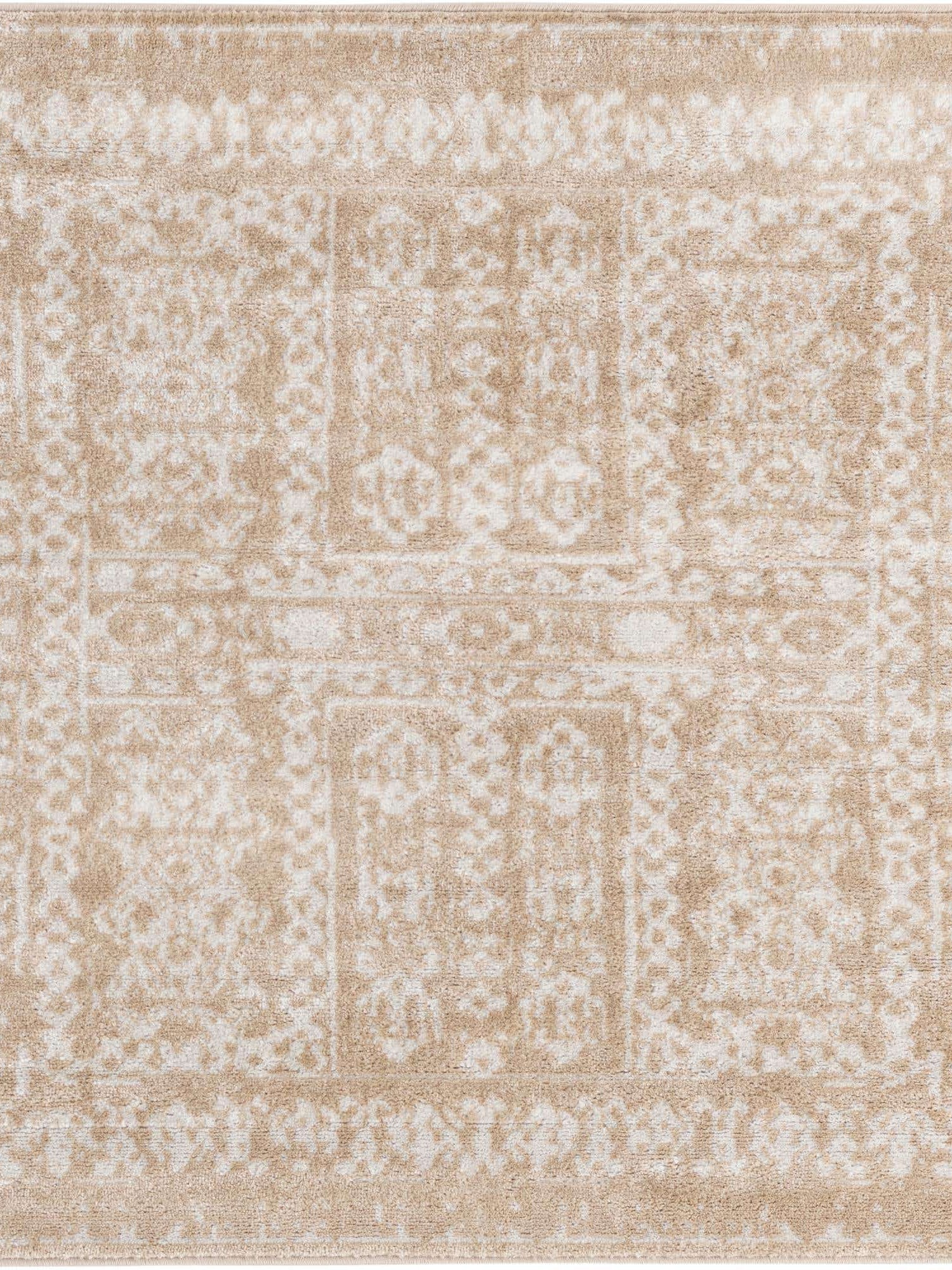 Washable Beige 7' 6 x 7' 6 Timeless Square Area Rug Easy to Clean Stain Resistant & Durable