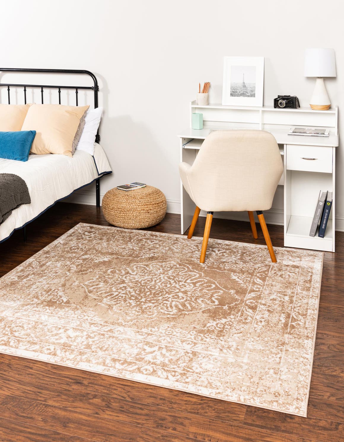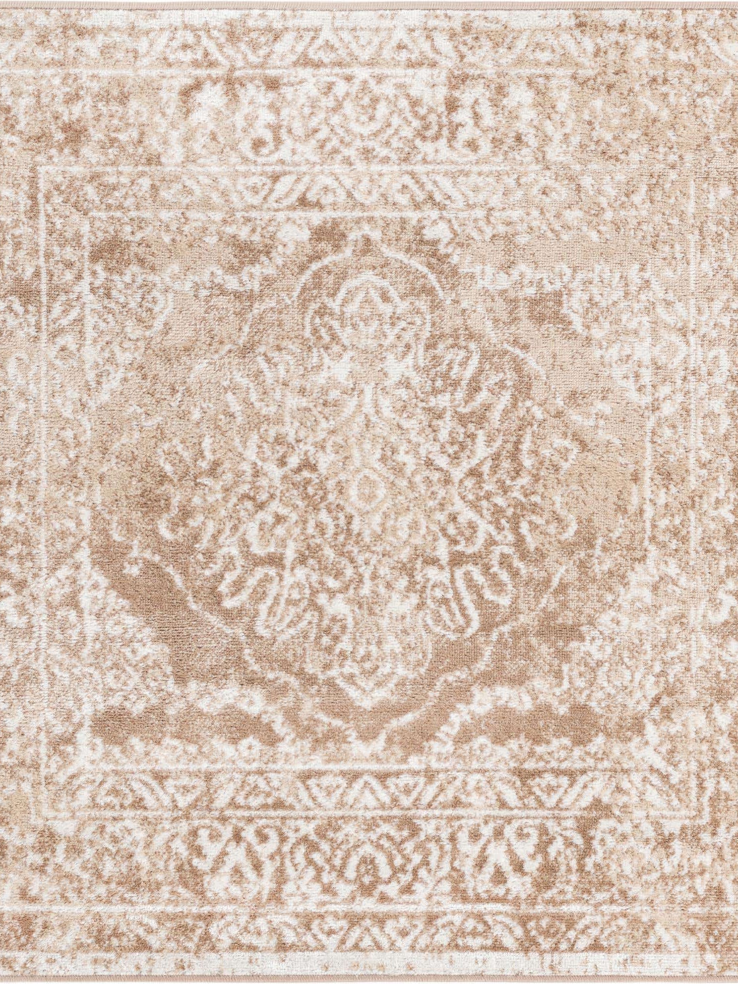 Washable Beige 7' 6 x 7' 6 Timeless Square Area Rug Easy to Clean Stain Resistant & Durable