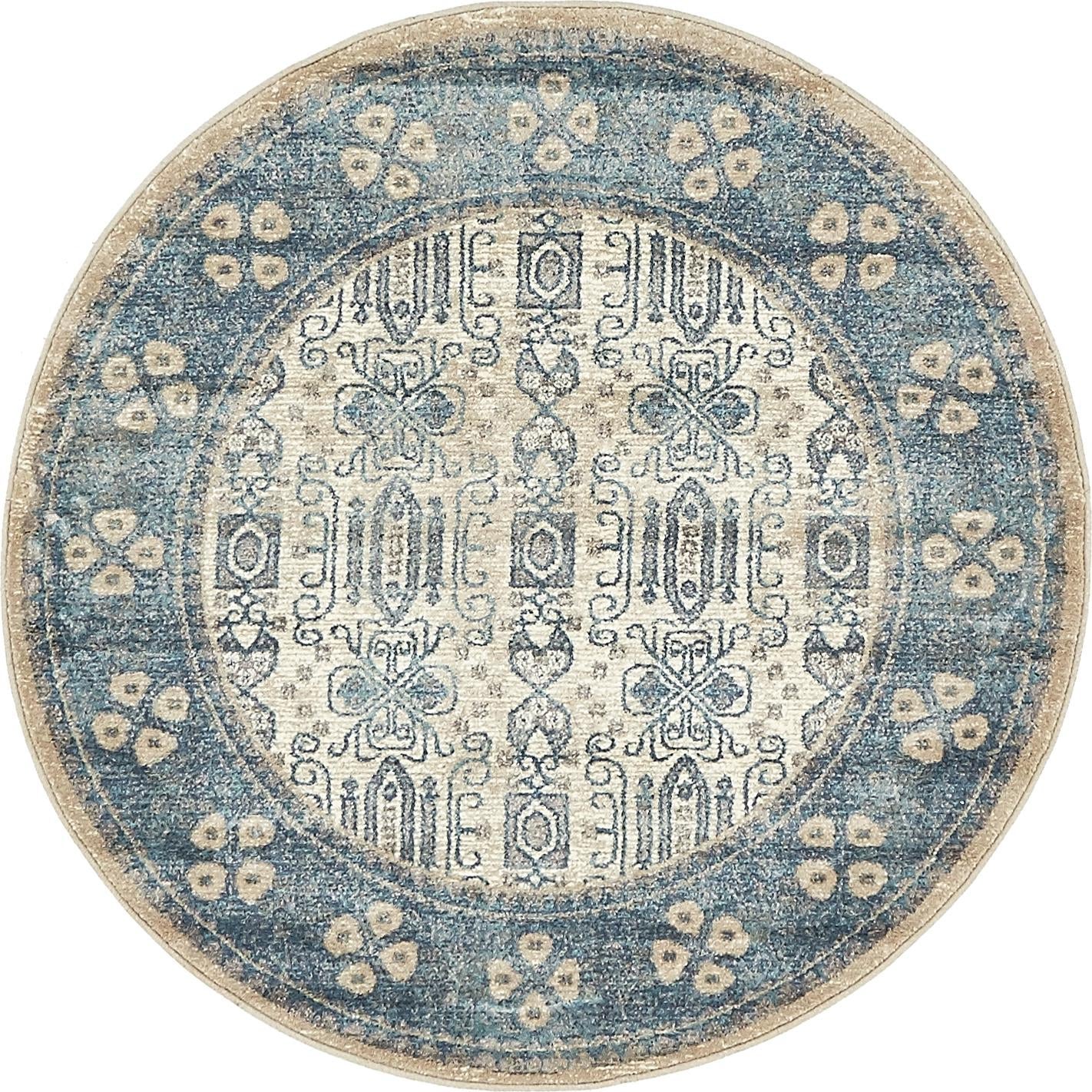 Washable Blue 5' x 5' Timeless Round Area Rug Easy to Clean Stain Resistant & Durable