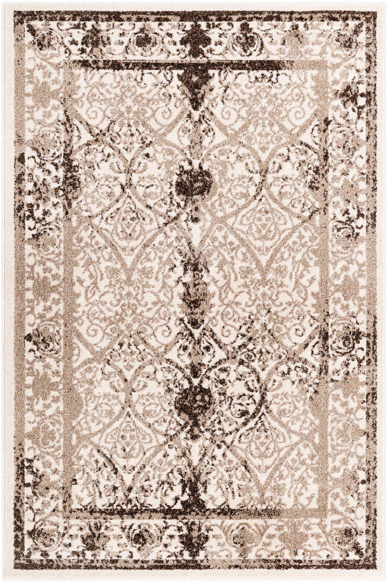 Beige 4' 1 x 6' 1 La Jolla Rectangle Area Rug 100% Polypropylene Traditional Pattern Easy Clean Carpet for Living, Dining, Bedroom, Office