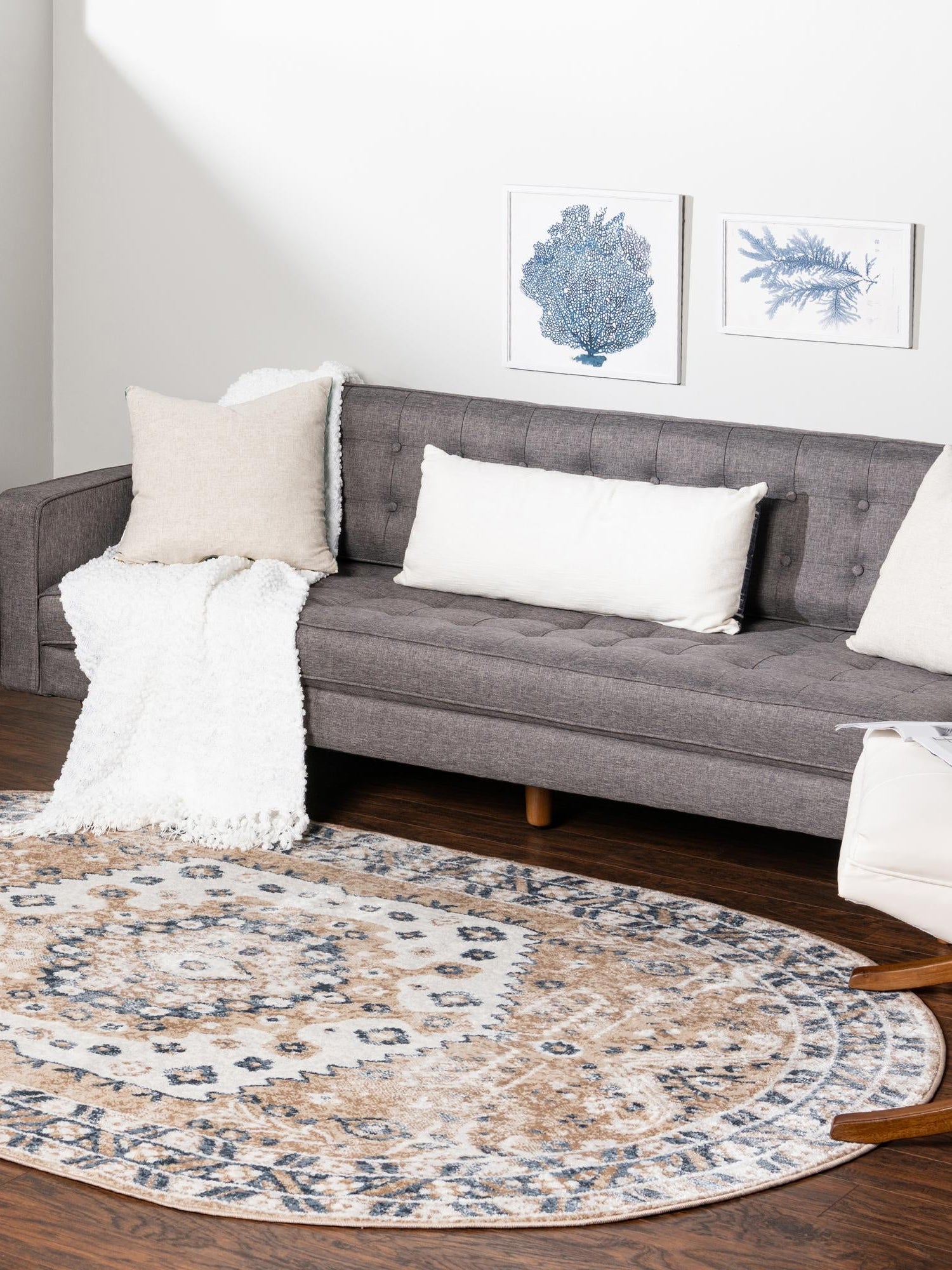 Washable Blue 5' x 5' Timeless Round Area Rug Easy to Clean Stain Resistant & Durable
