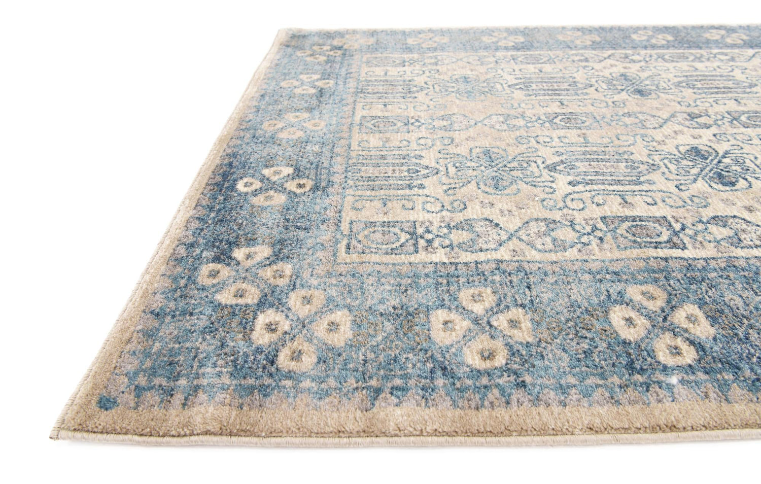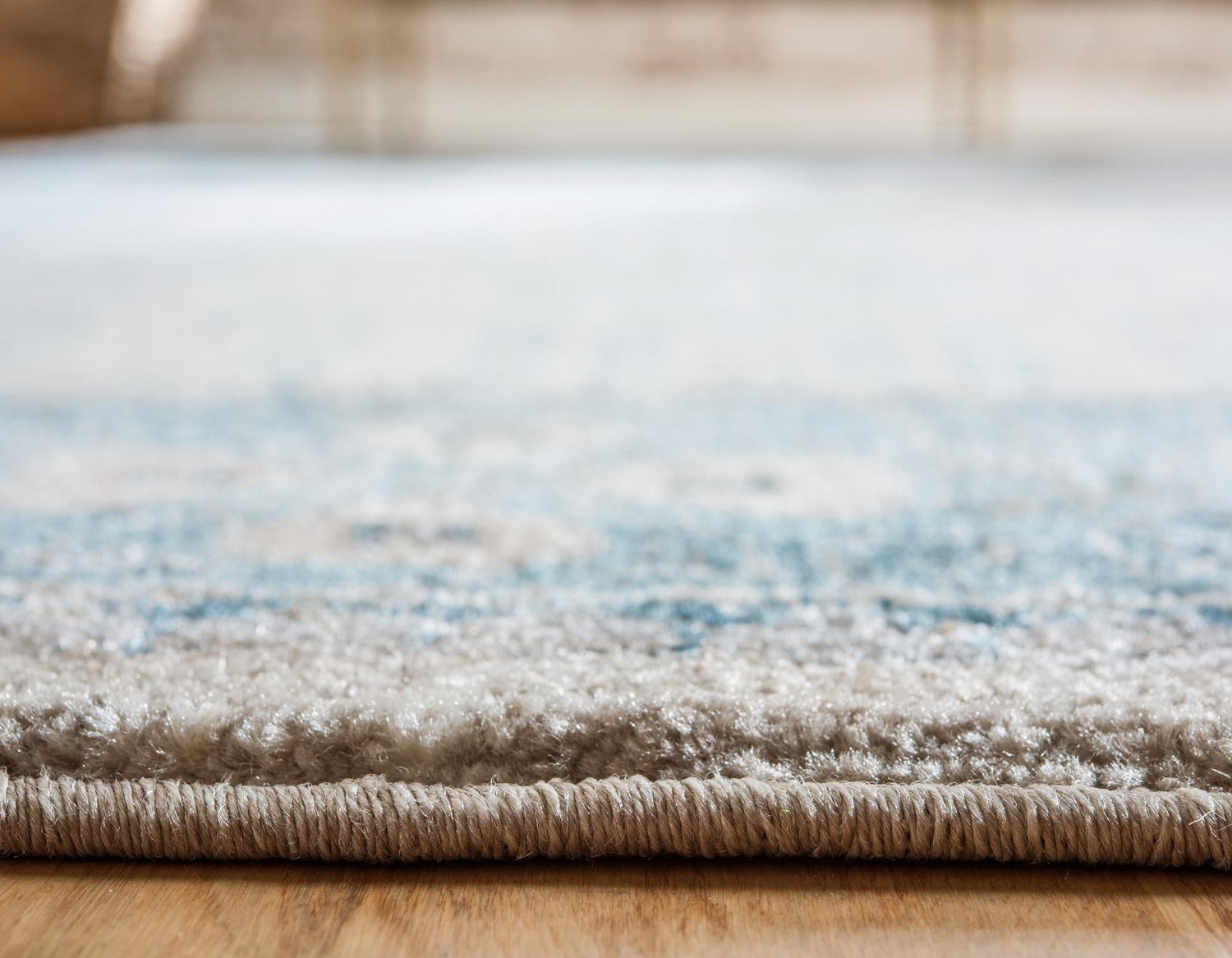 Washable Blue 5' x 5' Timeless Round Area Rug Easy to Clean Stain Resistant & Durable
