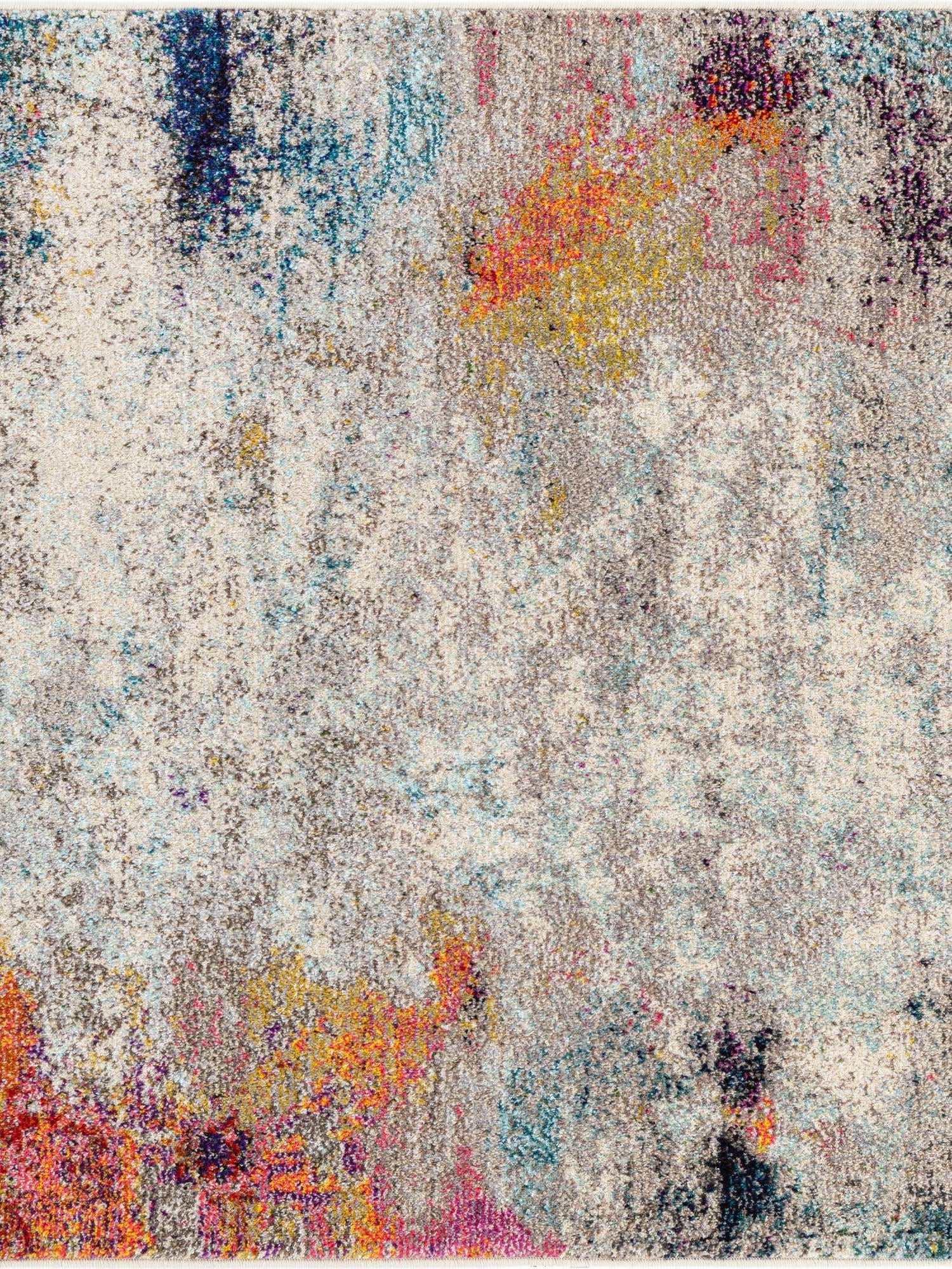 Beige 4' x 4' Chromatic Square Area Rug 100% Polypropylene With Cotton Backing Abstract Modern Colorful Carpet Mat for Home Decor & Interior Design