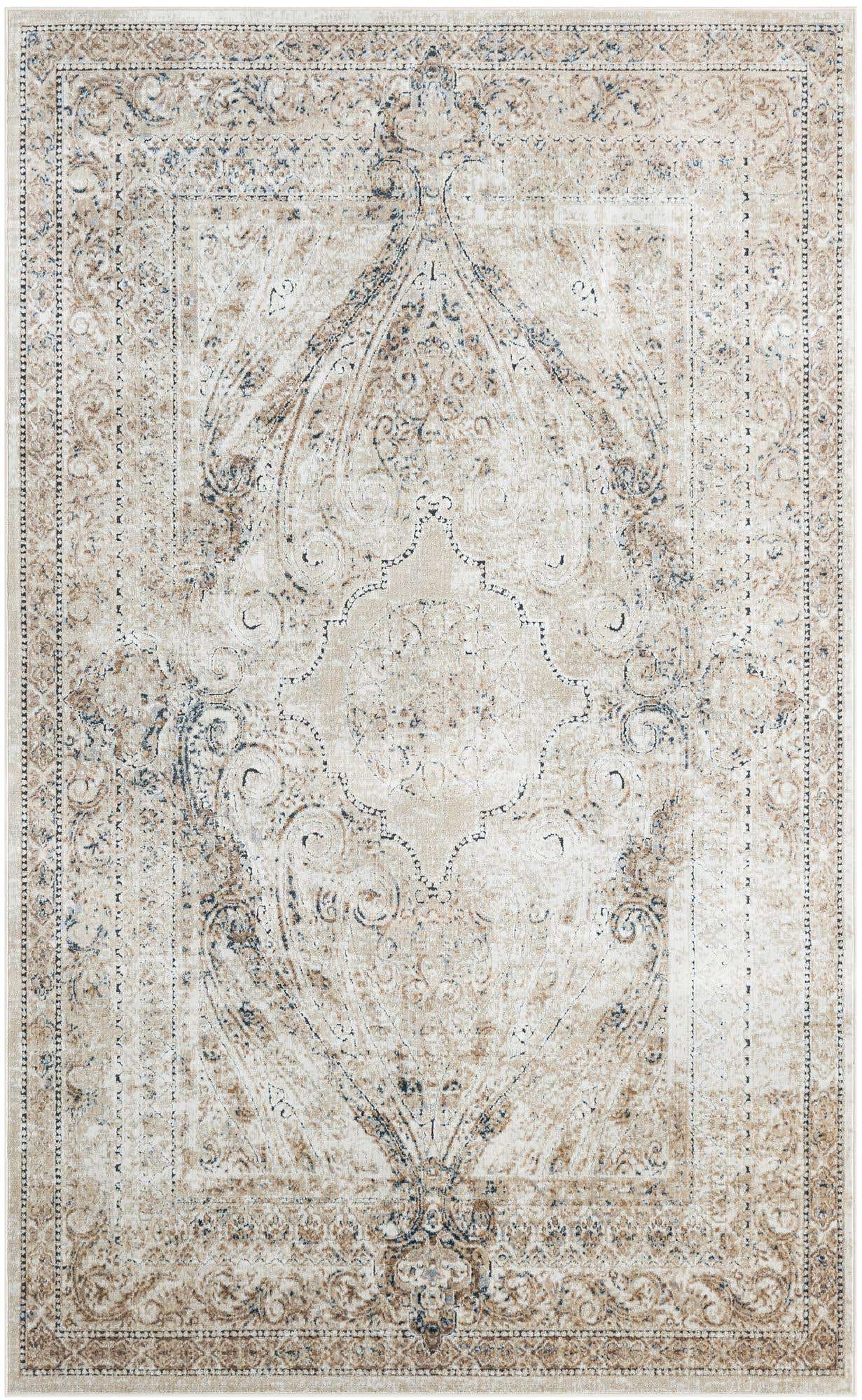 Beige 5' 3 x 8' Chateau Rectangle Area Rug 85% Polypropylene & 15% Chenille With Cotton Backing Traditional Vintage Distressed Carpet for Classical Interior Design Decorating