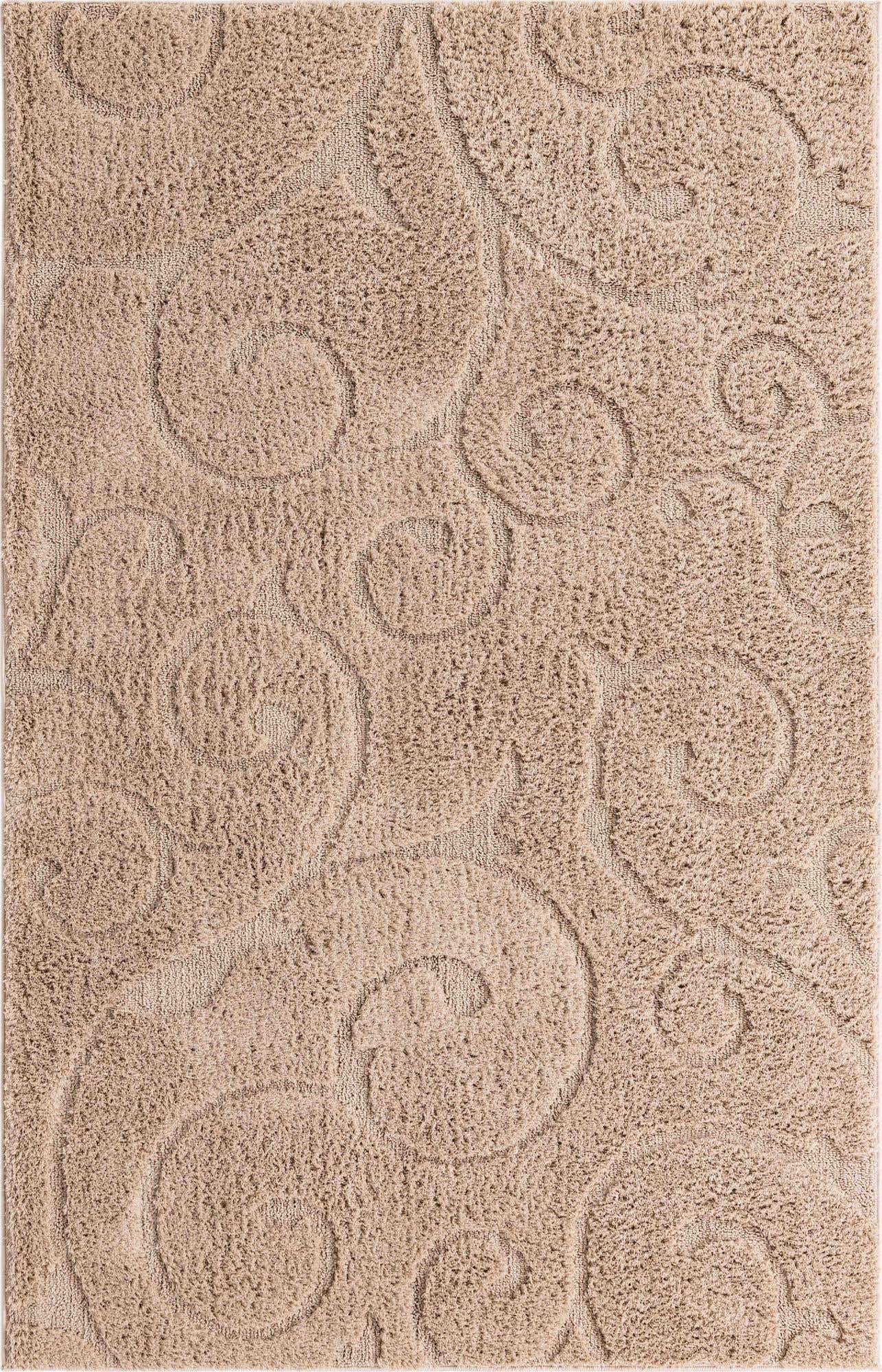 Beige 5' 1 x 8' Floral Shag Rectangle Area Rug Thick Soft Touch Fluffy & Plush Shaggy Pile 100% Polyester With Cotton Backing Carpet for Interior Design