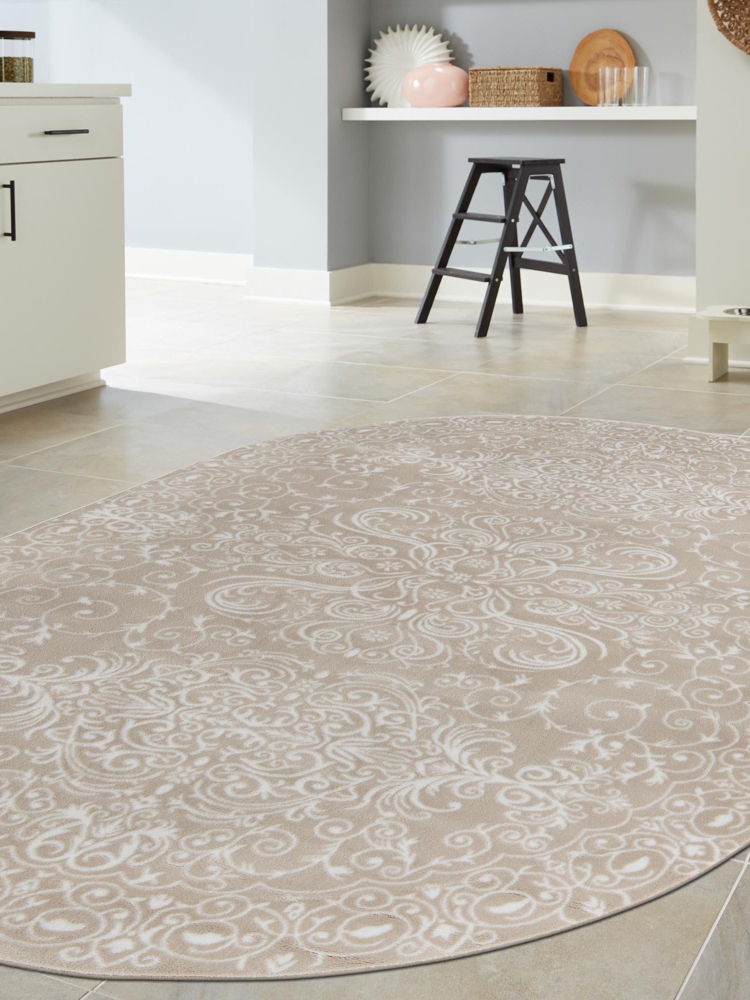 - Elegant Design: Featuring a beautiful beige color, this rug complements a variety of decor styles, especially traditional designs. The classic oval shape adds a sophisticated touch, making it a timeless addition to your interior. It's a perfect blend of style and functionality, enhancing the aesthetic appeal of your rooms.