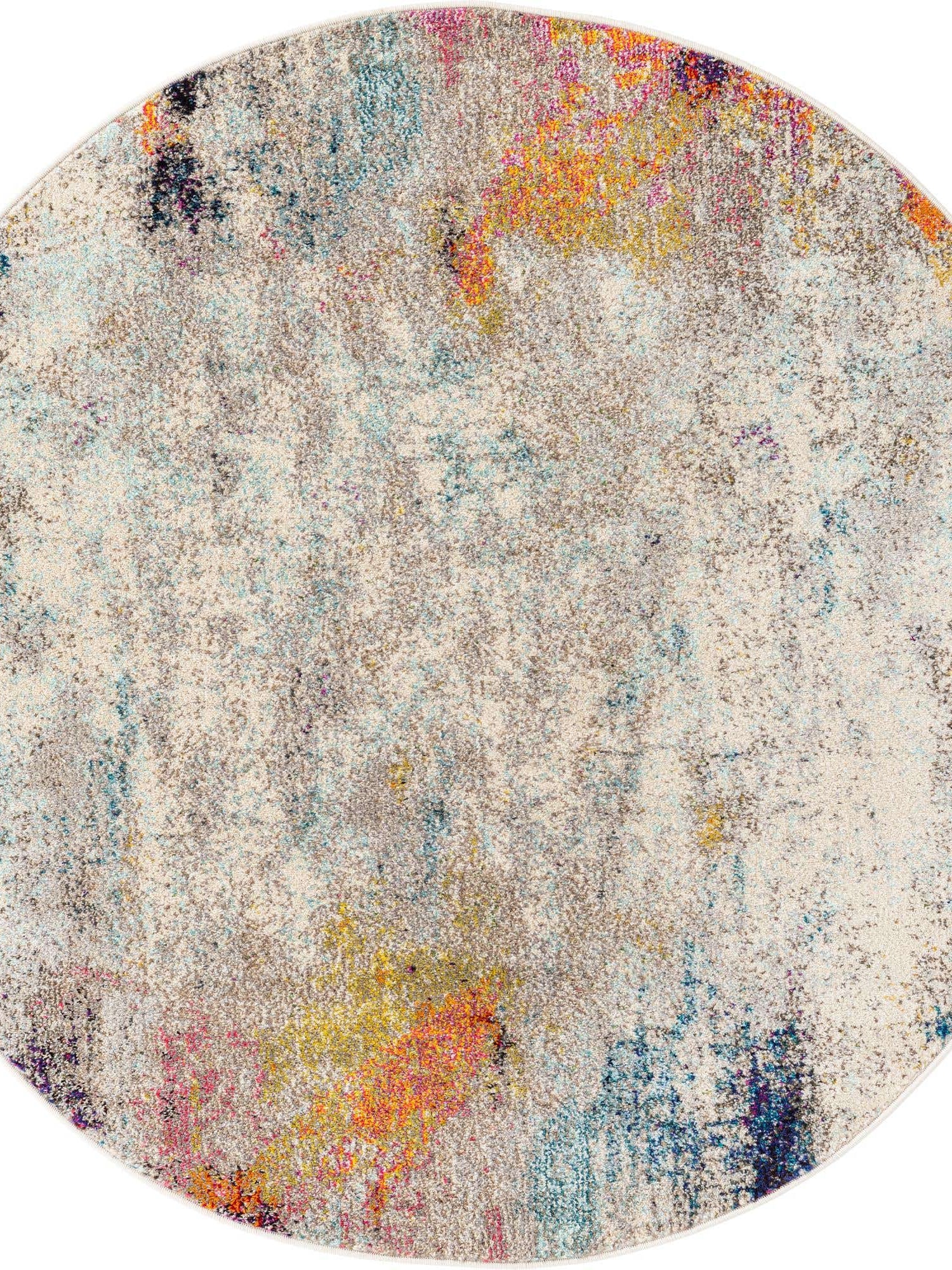 Beige 5' x 5' Chromatic Round Area Rug 100% Polypropylene With Cotton Backing Abstract Modern Colorful Carpet Mat for Home Decor & Interior Design