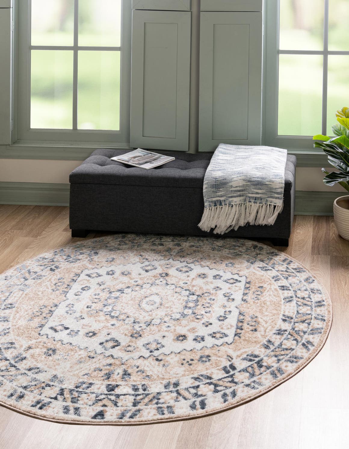 Washable Blue 5' x 5' Timeless Round Area Rug Easy to Clean Stain Resistant & Durable
