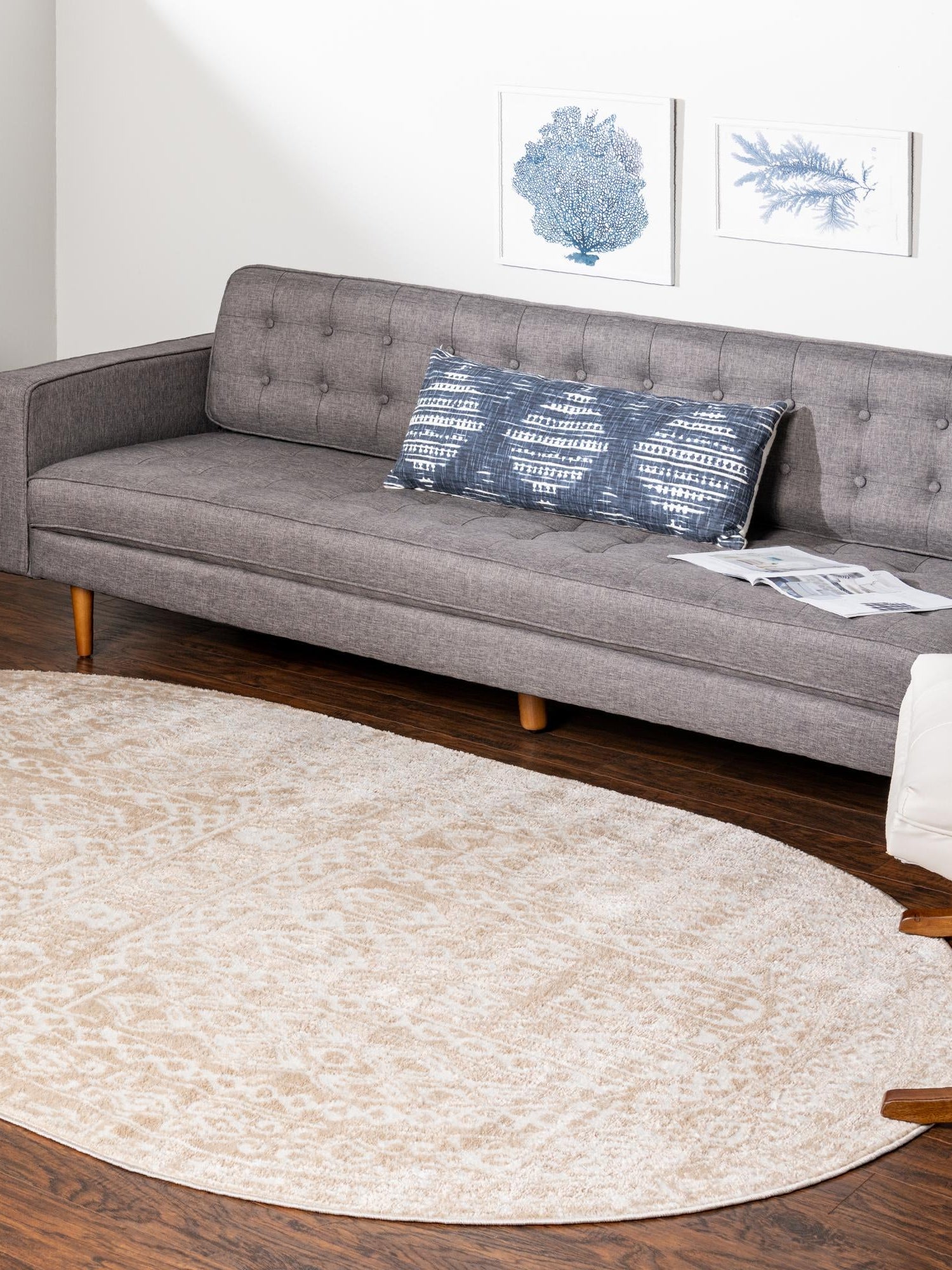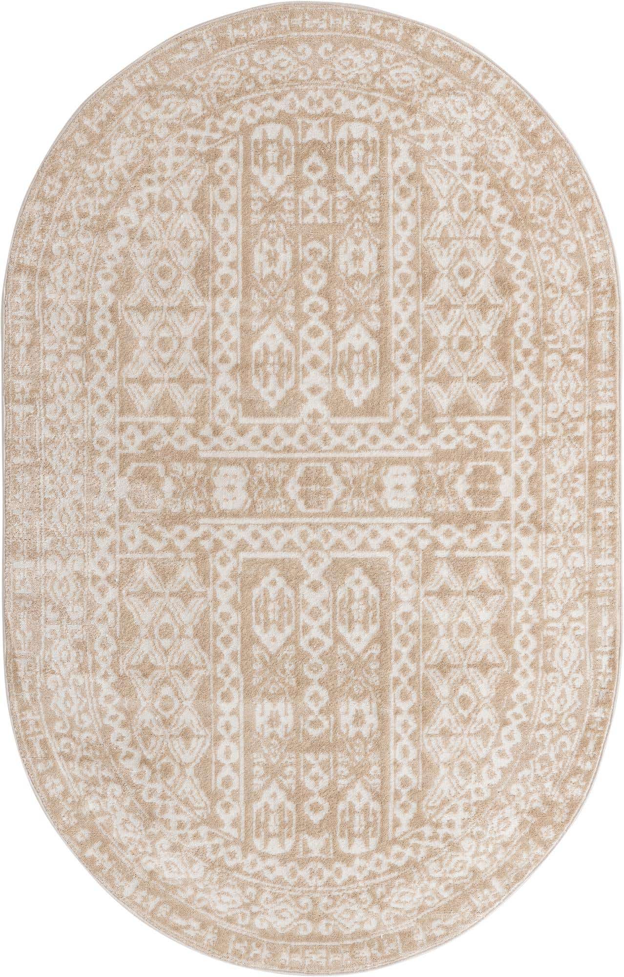 Washable Ivory Almond 5' 3 x 8' Yara Oval Area Rug Easy to Clean Stain Resistant & Durable