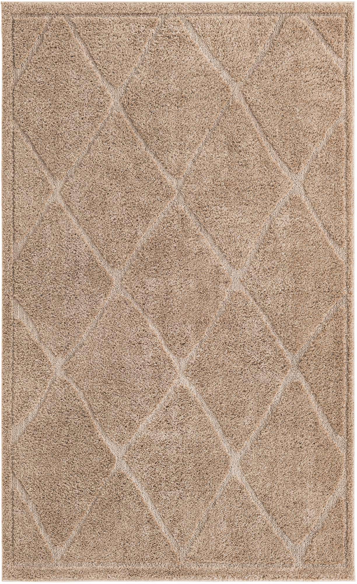 Beige 5' x 8' Trellis Shag Rectangle Area Rug Thick Soft Touch Fluffy & Plush Shaggy Pile