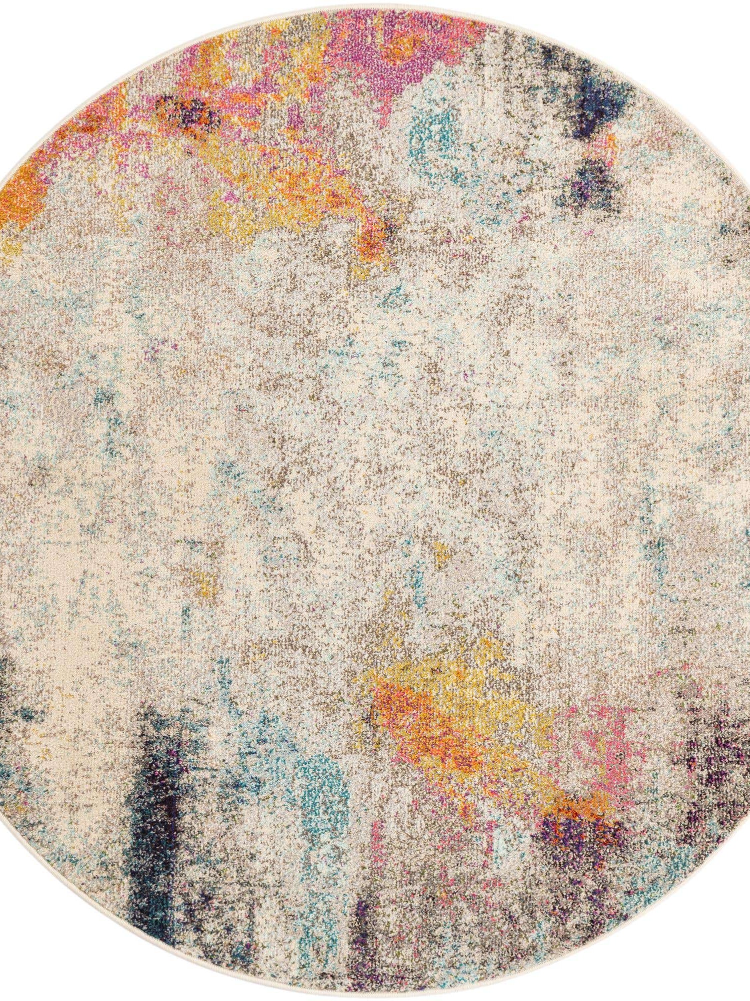 Beige 6' 1 x 6' 1 Chromatic Round Area Rug 100% Polypropylene With Cotton Backing Abstract Modern Colorful Carpet Mat for Home Decor & Interior Design