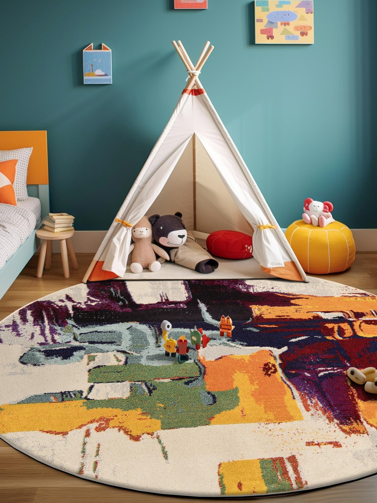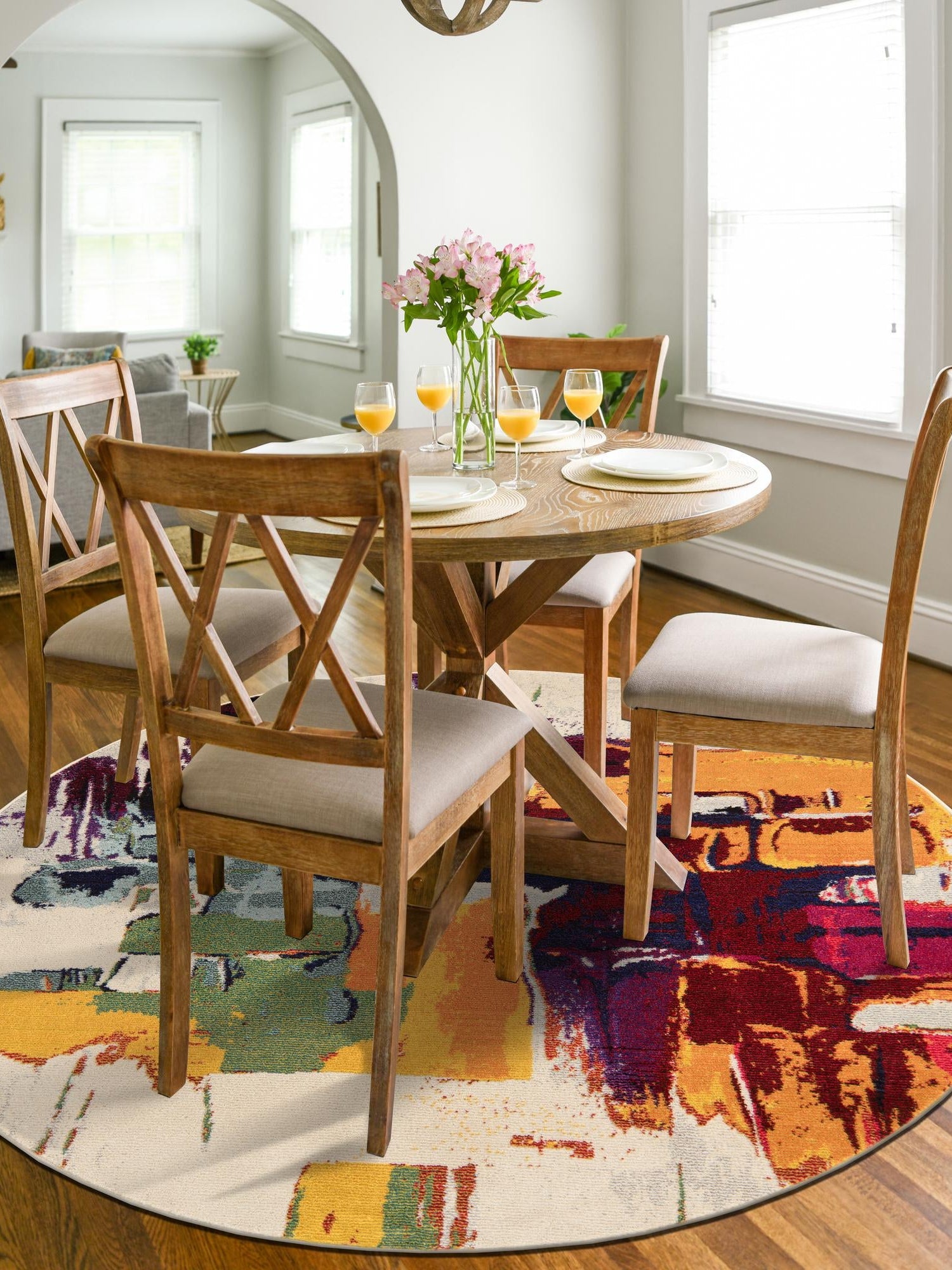 Washable Multicolor 5' x 5' Timeless Round Area Rug Easy to Clean Stain Resistant & Durable