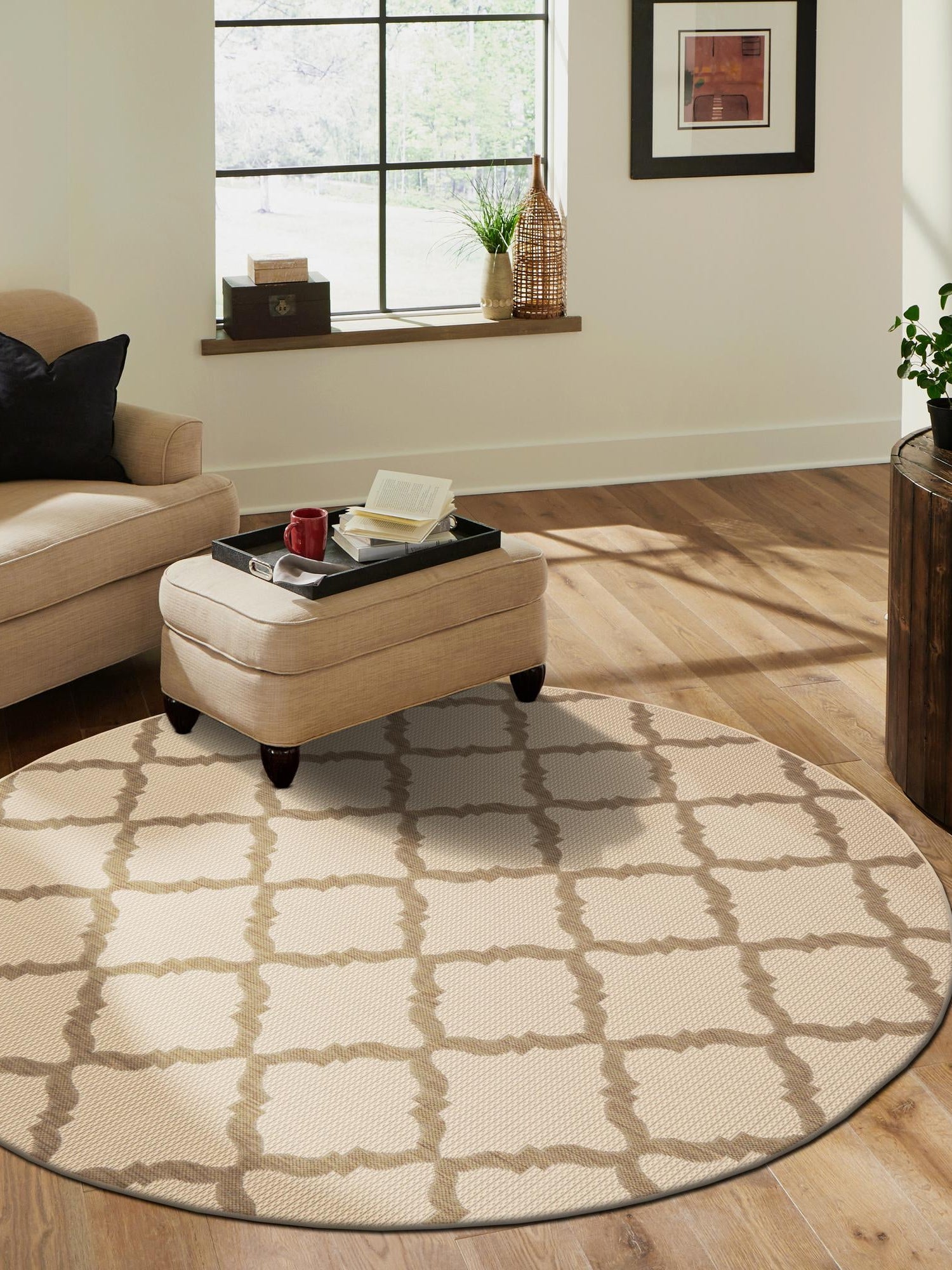Beige 6' 1 x 6' 1 Outdoor Trellis Round Area Rug Weather Re...