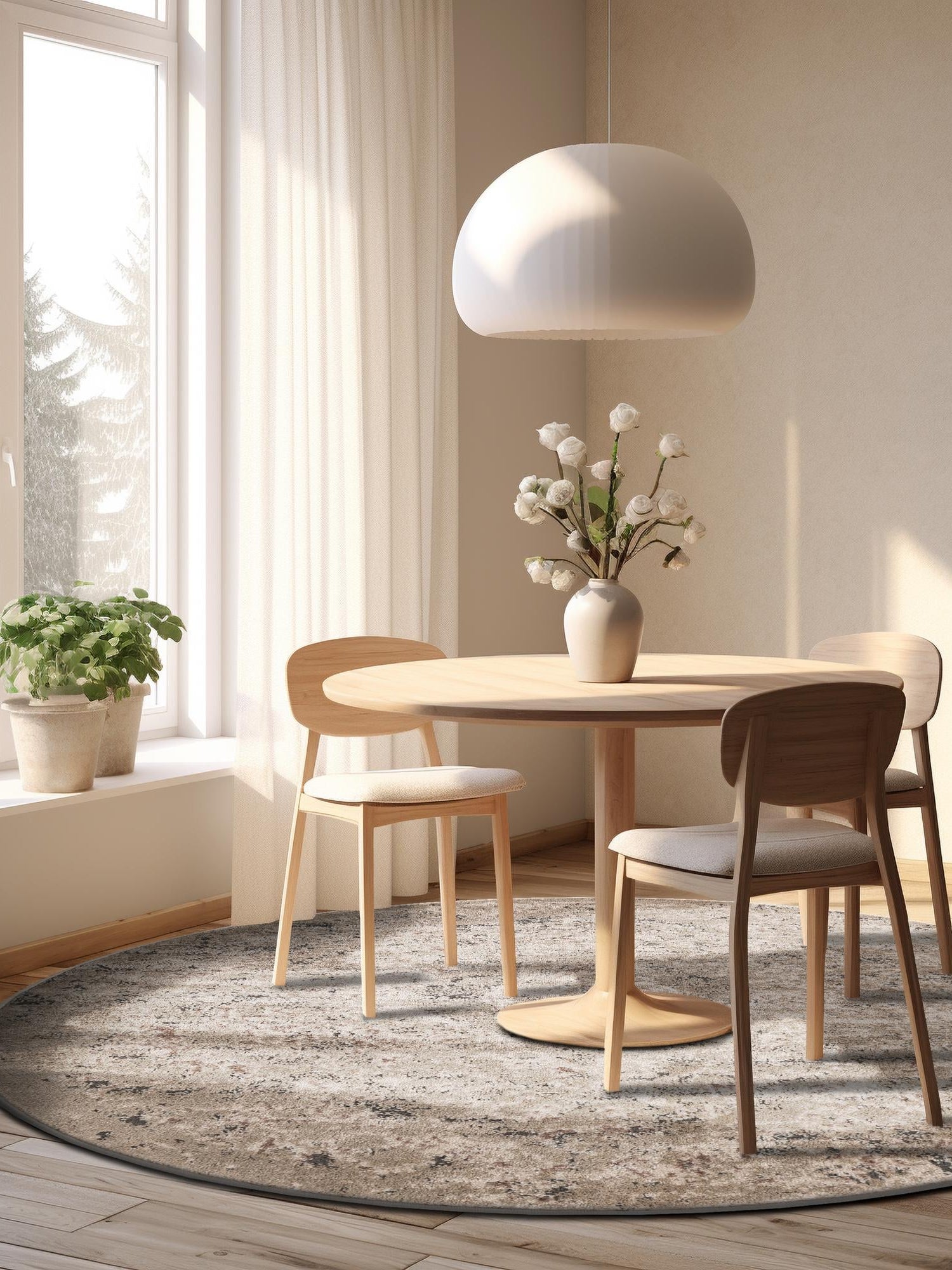 Washable Gray 2' x 2' Timeless Round Area Rug Easy to Clean Stain Resistant & Durable