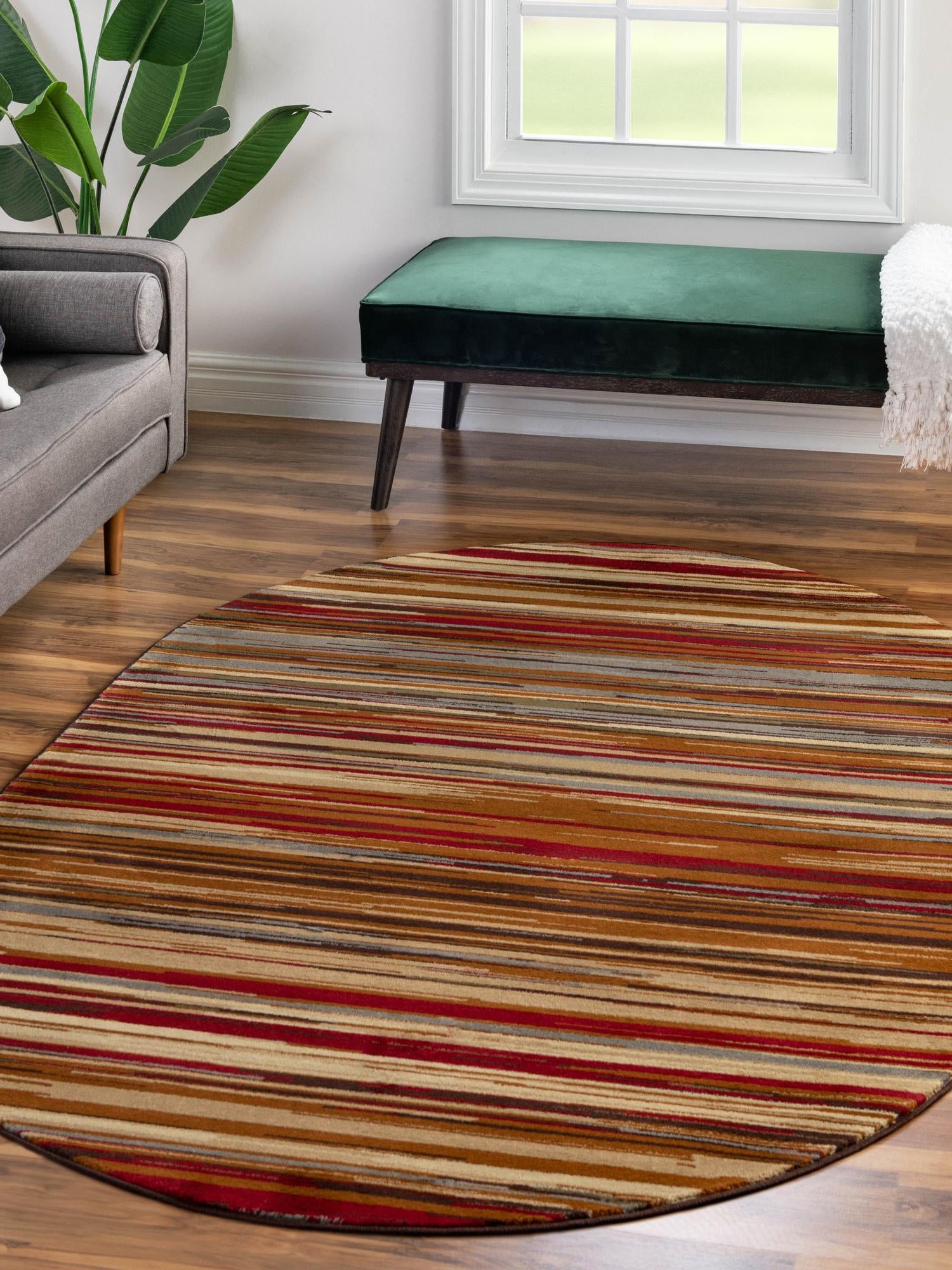 Washable Orange 4' x 6' Timeless Oval Area Rug Easy to Clean Stain Resistant & Durable