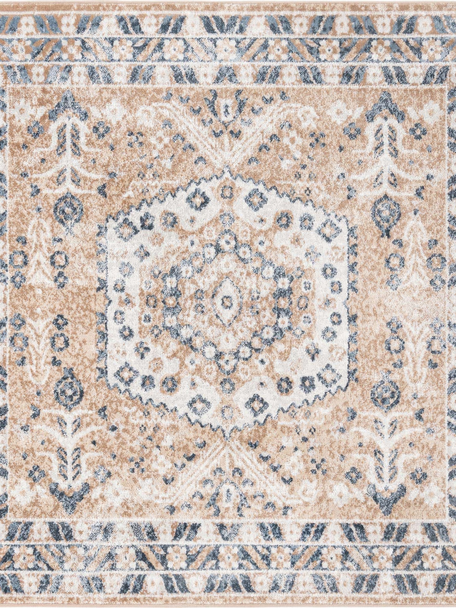 Washable Beige 7' 6 x 7' 6 Timeless Square Area Rug Easy to Clean Stain Resistant & Durable