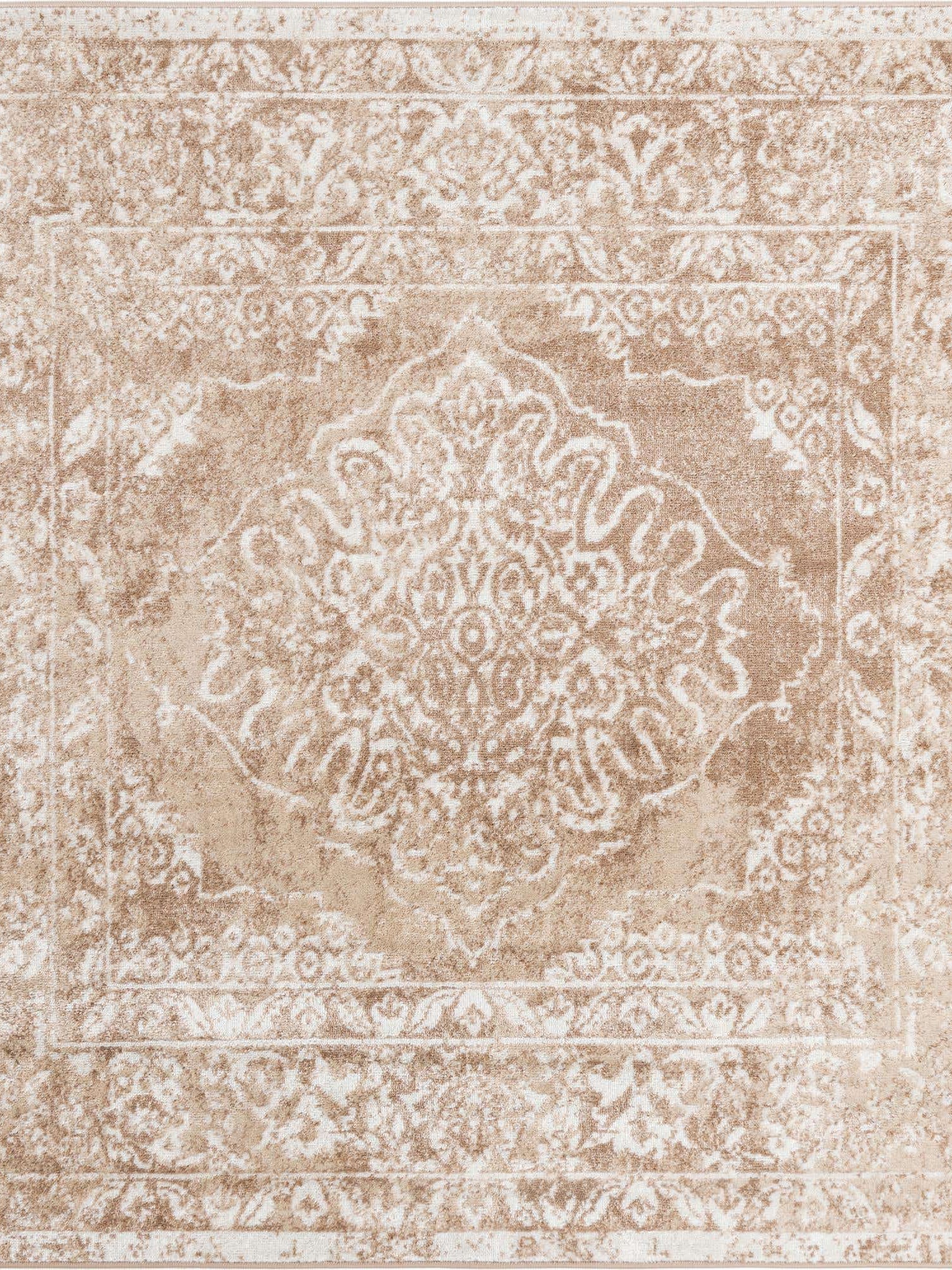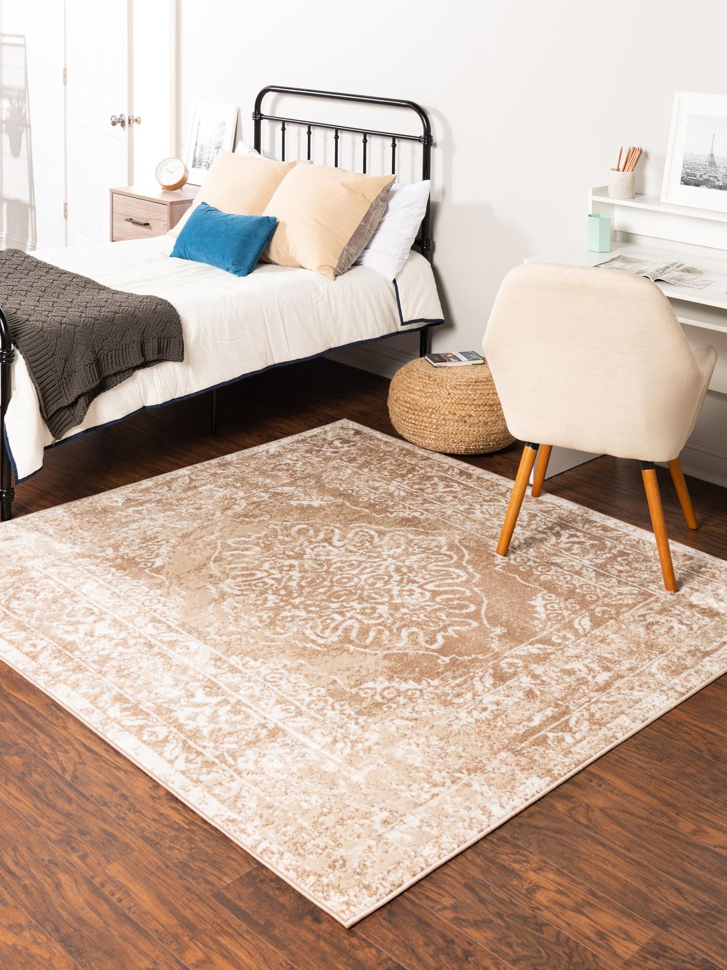 Washable Beige 7' 6 x 7' 6 Timeless Square Area Rug Easy to Clean Stain Resistant & Durable