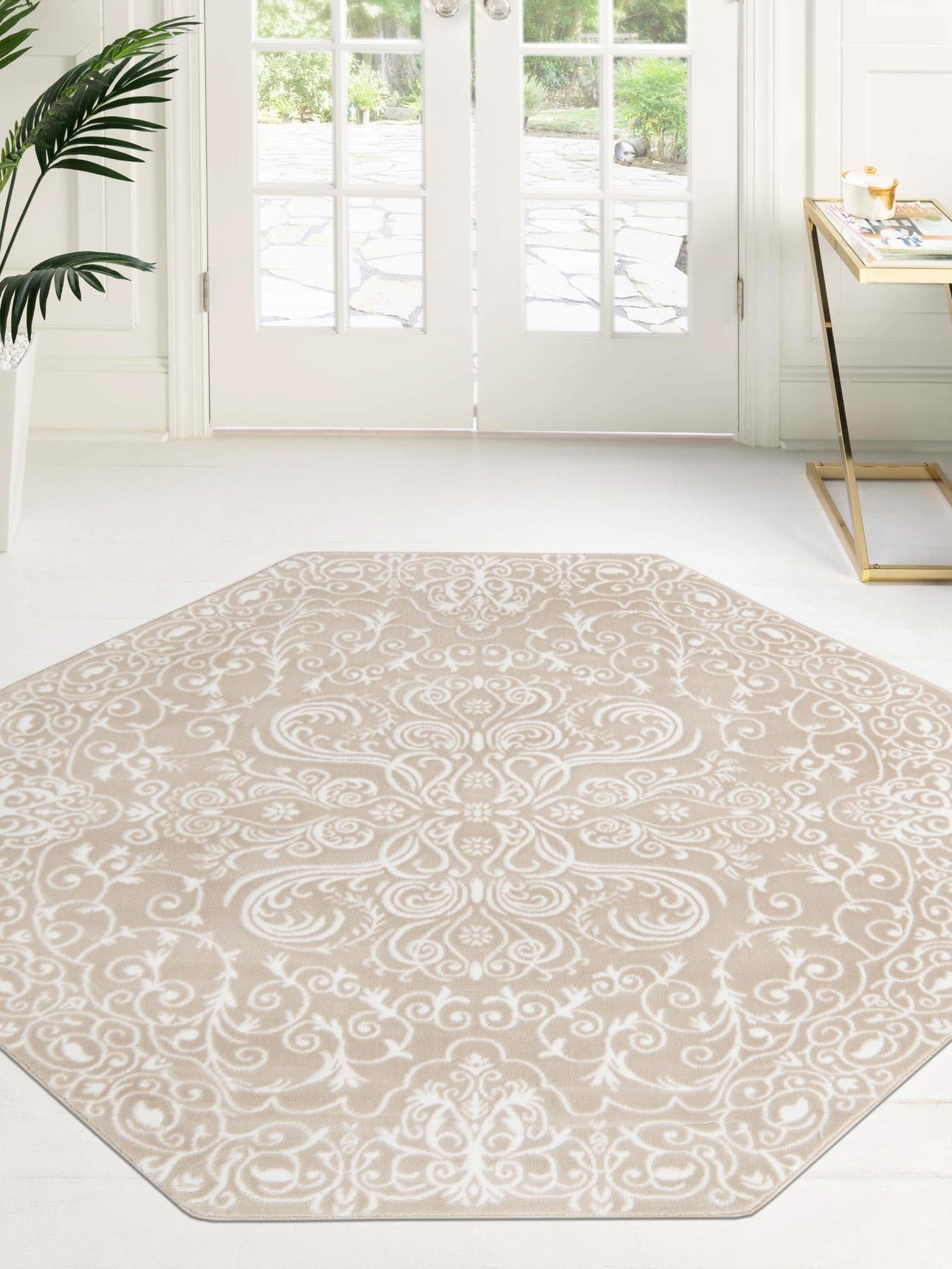 Beige 6' x 6' Rushmore Octagon Area Rug 55% Polypropylene & 45% Polyester Durable Quality Carpet for Indoor Home Decorating