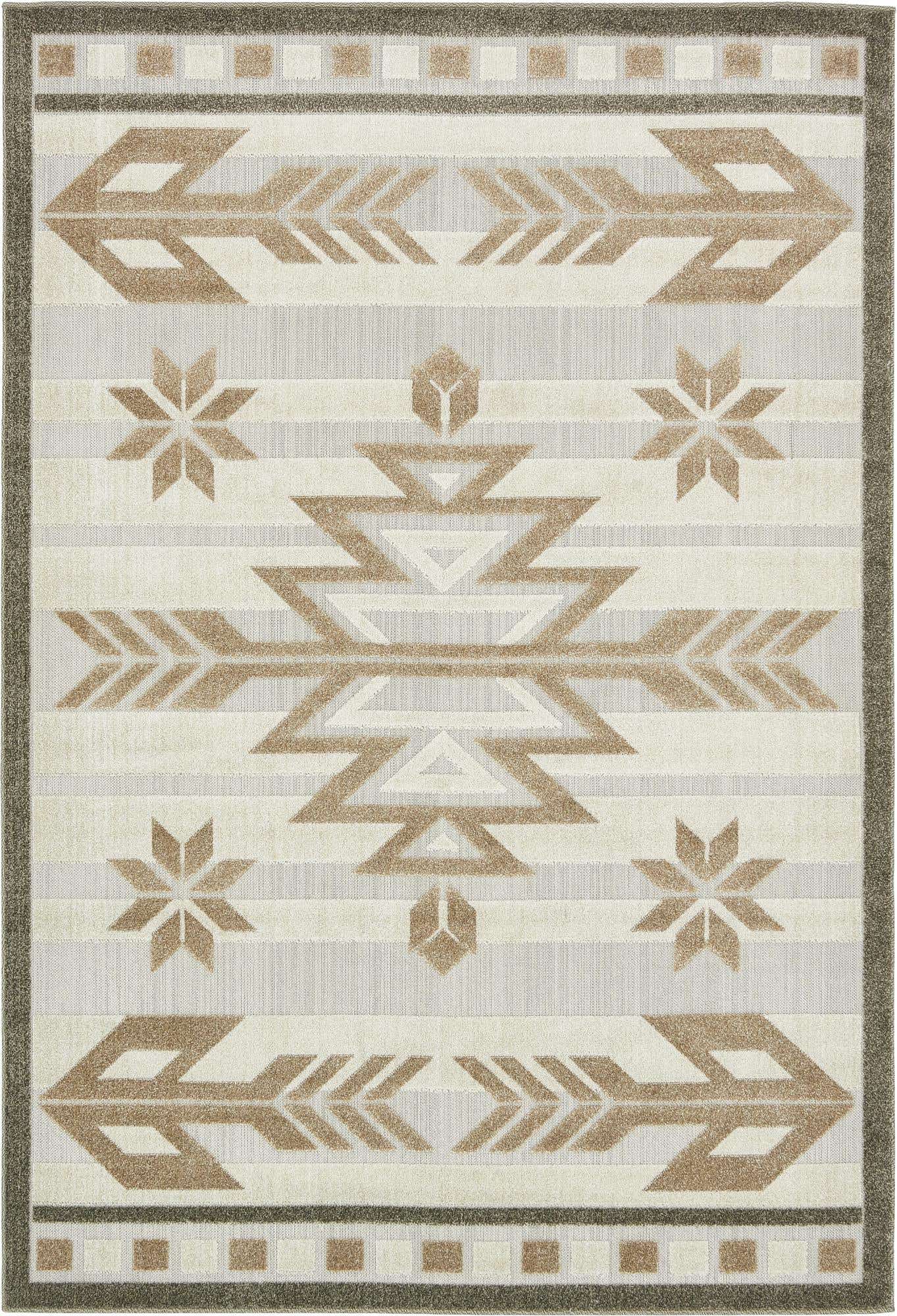 Beige 6' x 9' Outdoor Modern Rectangle Area Rug Weather Res...